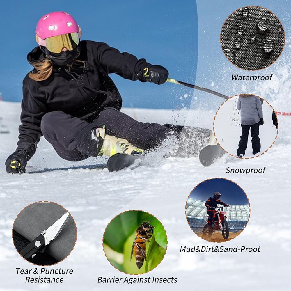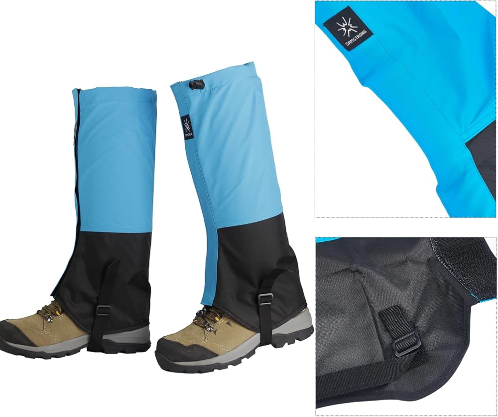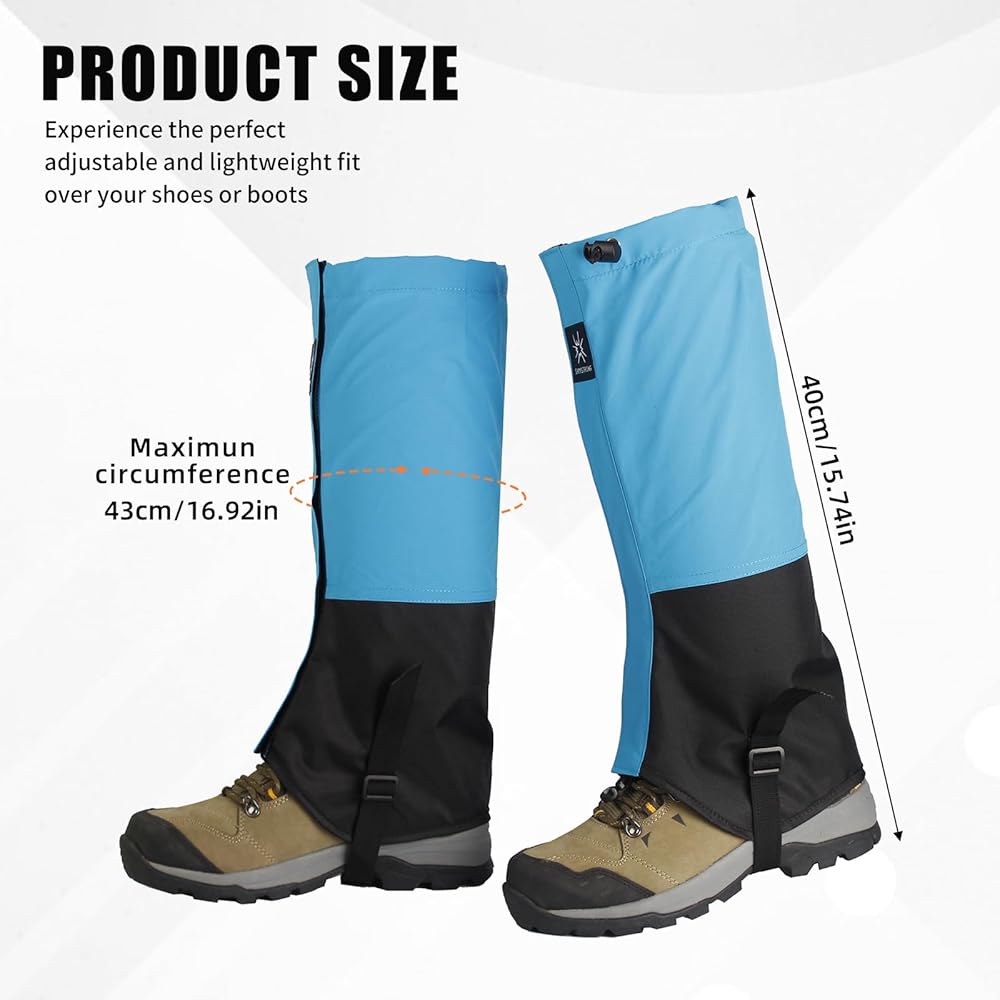 EASY TO USE: Equipped with adjustable high-density elastic straps at the top, foot bands, and snap fastener hooks at the bottom, these gaiters effectively seal the area around your legs.
