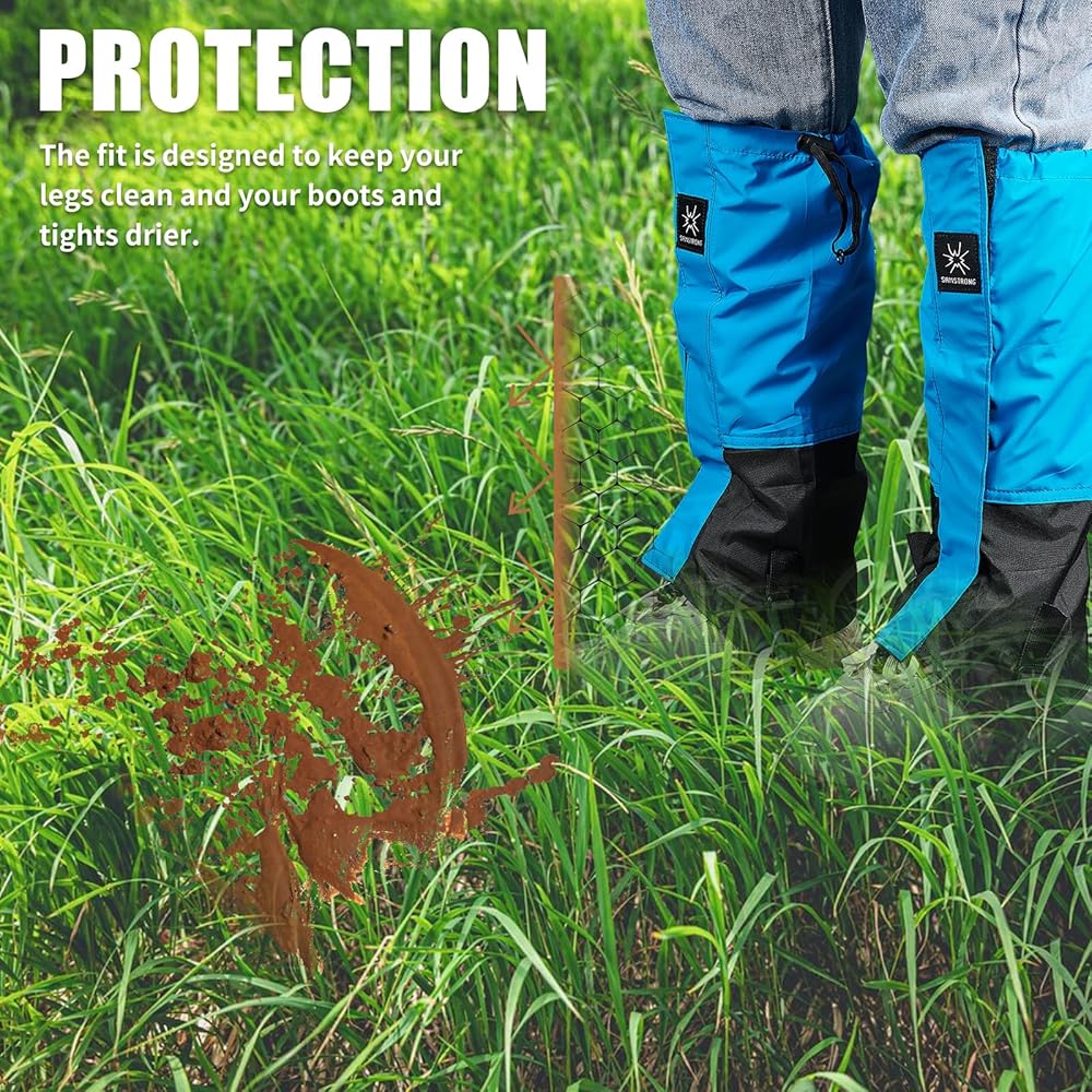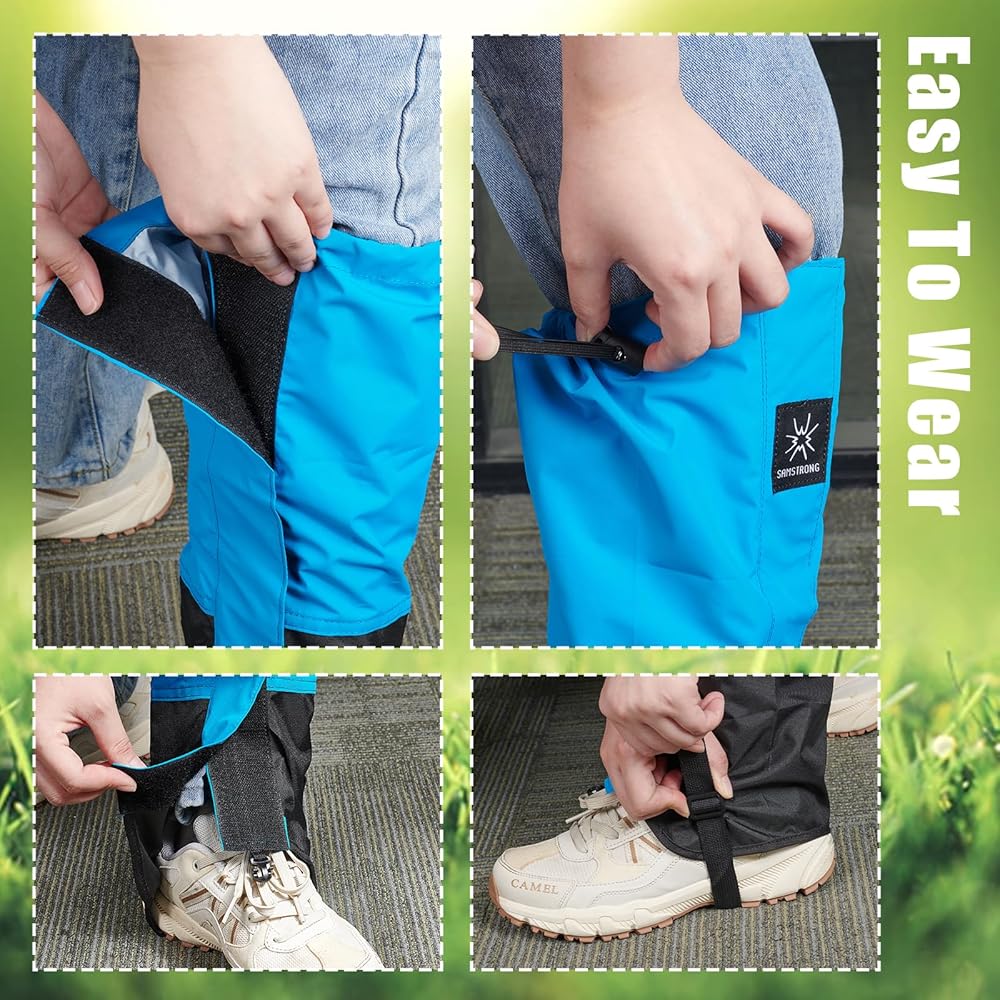 PRACTICAL PROTECTION: Gaiters serve as a barrier against flying gravel, grass debris, water, snow, rain, mud, wind, mosquitoes, and insects, preventing them from entering your shoes or pants. Additionally, they can mitigate cuts, bruises, rips, or stains in clothes.