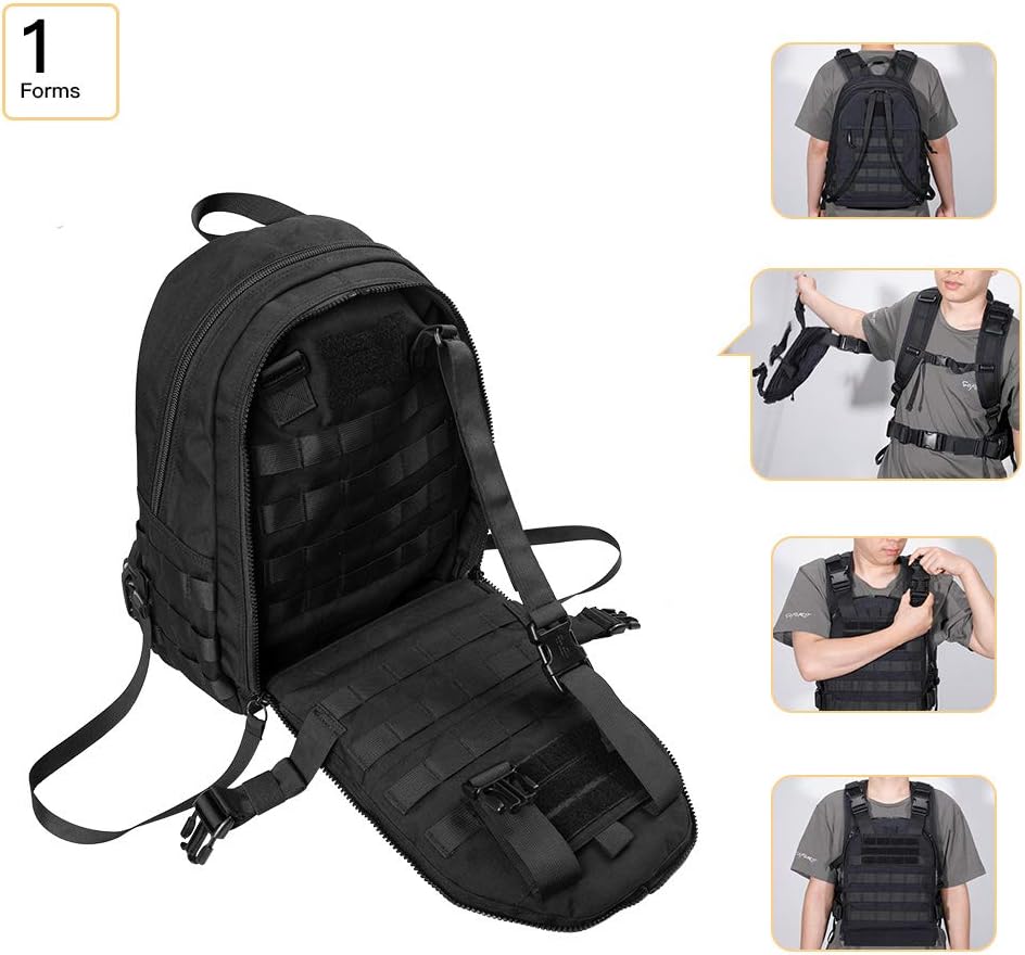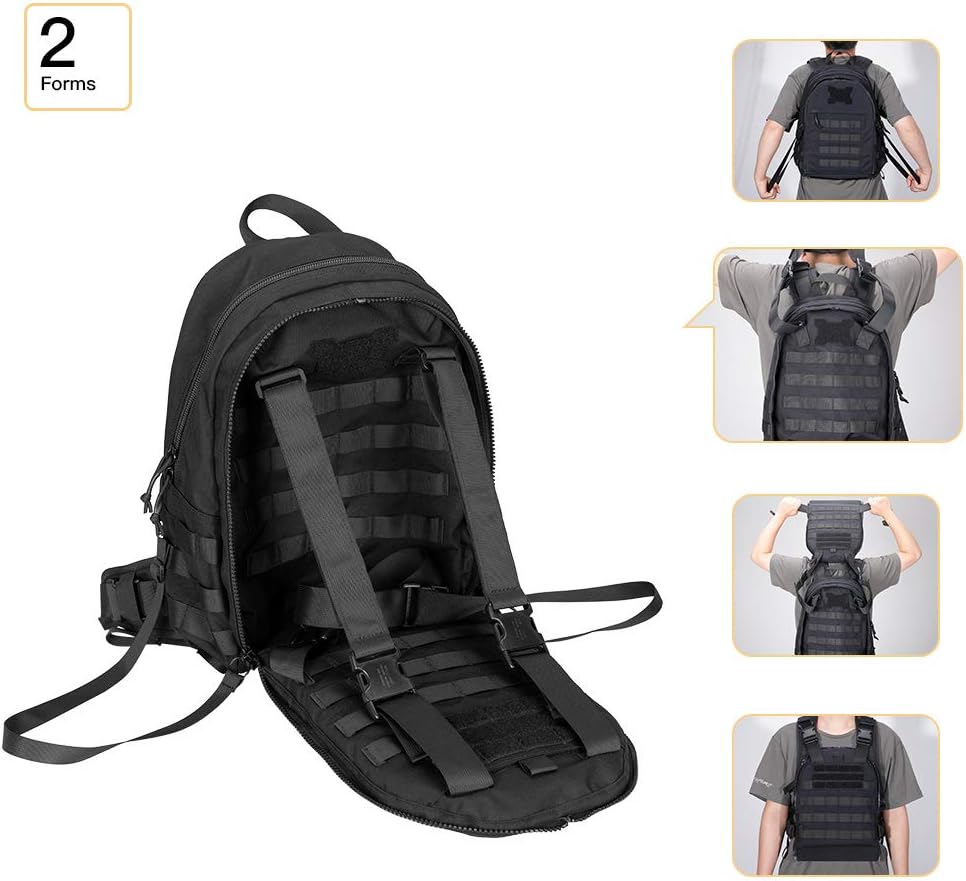 تصميم خاص؛ طريقتان للاستخدام، يمكن أن تتحول حقيبة الظهر التكتيكية العسكرية بسرعة إلى سترة تكتيكية، مناسبة لمجموعة متنوعة من الأنشطة الخارجية، والصيد، والتسلق، والسفر، والمشي لمسافات طويلة، وما إلى ذلك. قابلة للتكيف تمامًا مع احتياجاتك لتمنحك ميزة تكتيكية