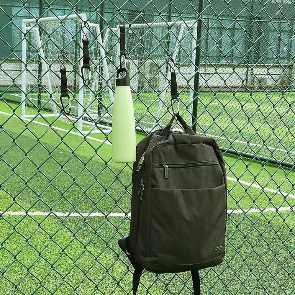 Easy To Use: One end of the fence clip is designed with a metal hook, so you only need to open the D-shaped ring, hang your target items on the ring, and hang the metal hook on the fence, net, branch, etc. Carabiner clip locks closed to secure your gear.Installation takes a few seconds.