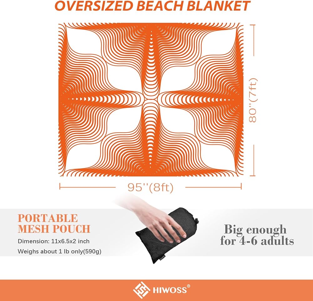 • 🌊【UNIQUE DESIGN, 4 CORNER POCKETS】The eye-catching designed beach blanket, with quality in appearance, will make you stand out on the beach! You can easily find your family and friends on the beach without worrying about getting lost. At the same time, the beach mat is designed with four built-in corner pockets that prevent the blanket from blowing away.