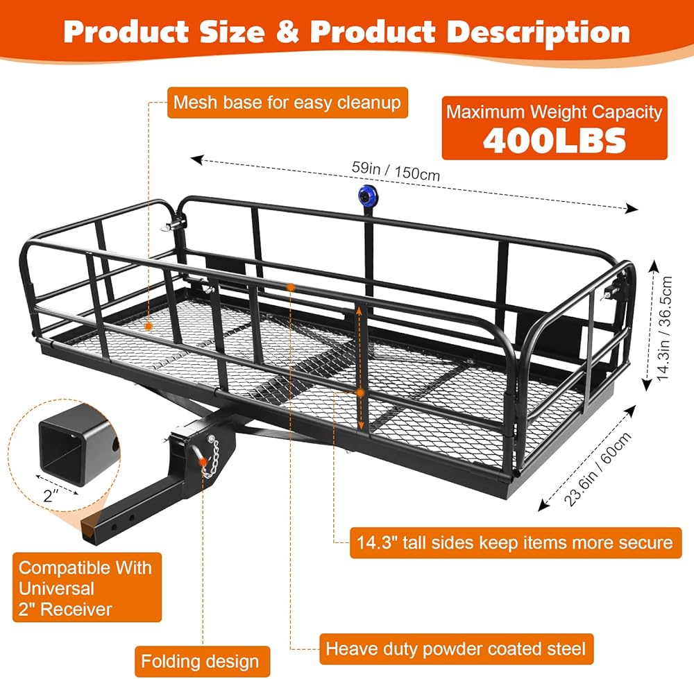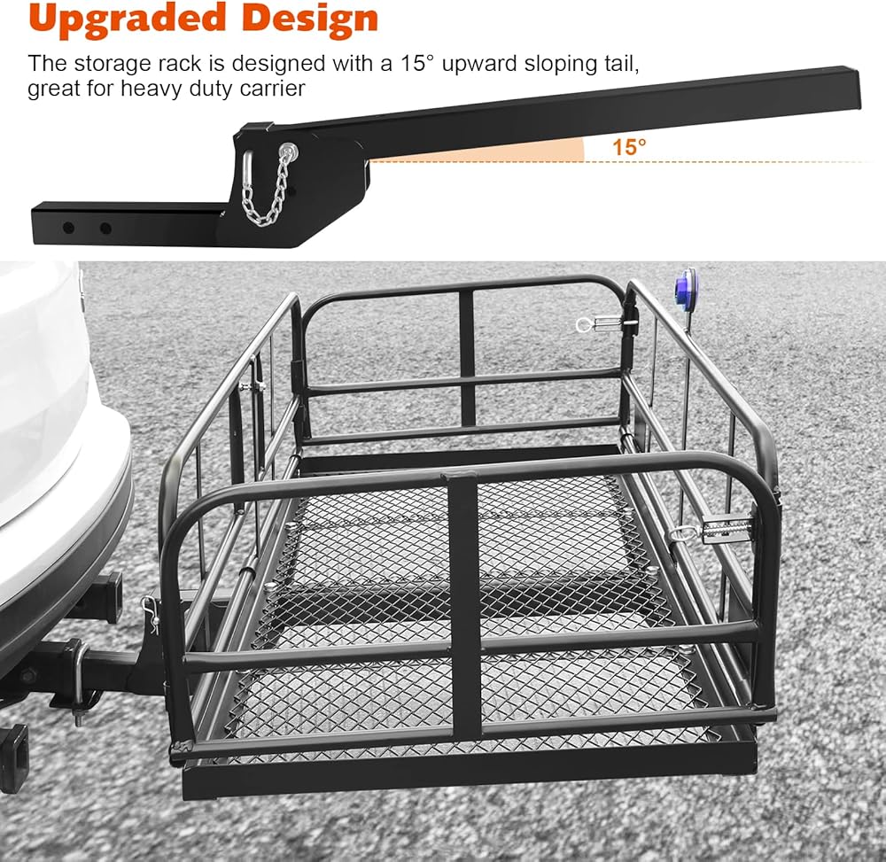 ☑ 【استخدام على نطاق واسع】رف البضائع الخلفي سهل التركيب في الجزء الخلفي من سيارتك، أو سيارة التخييم، أو سيارات الدفع الرباعي، أو السيارة الترفيهية، أو الشاحنة أو الشاحنة، مثالي لنقل حقائب البضائع الإضافية، ومعدات التخييم، والأمتعة وأكثر من ذلك، يناسب جميع أجهزة استقبال وصلة الجر مقاس 2 بوصة .