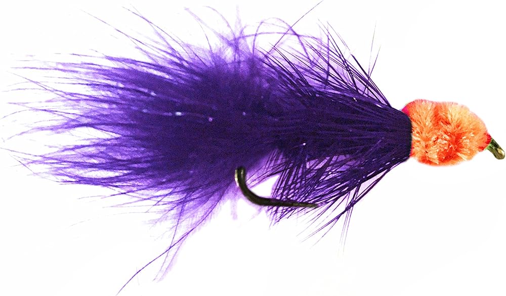 Egg Sucking Leech Purple and Orange, Mixed sizes 4, 6 and 8. 1 dozen - 4qty each A total of 1 dozen - 4qty each.