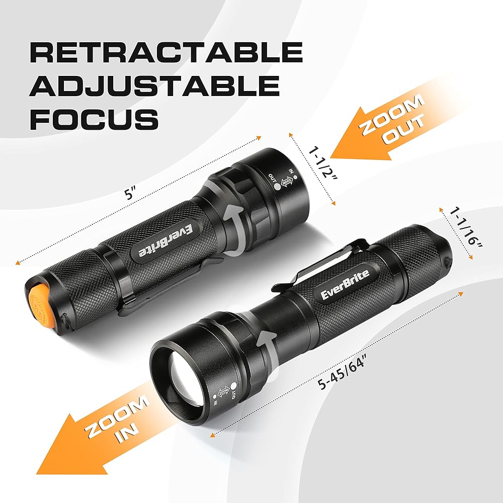 400 لومن حقيقي وعمر بطارية أطول: ينبعث مصباح EverBrite بحد أقصى من الإخراج يصل إلى 400 لومن ويلقي شعاعًا يبلغ 525 قدمًا، وقت تشغيل طويل الأمد يصل إلى 22 ساعة بواسطة بطاريات 3AAA.