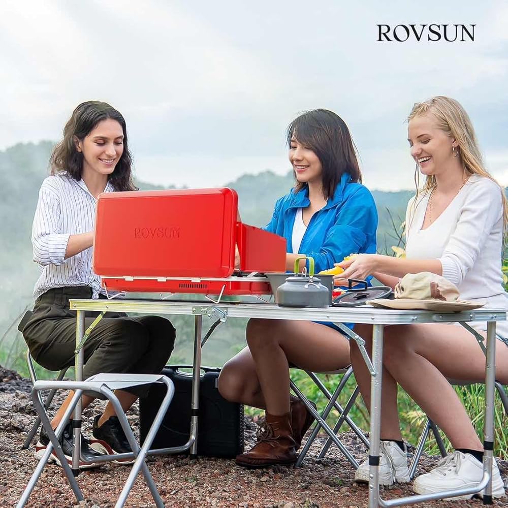 【Portable & Versatile】It is very suitable for use during camping, hiking, picnicking, or tailgating parties, and you can carry your full set of outdoor kitchen with you. Although the structure is sturdy and made of sprayed steel, the entire stove weighs only 12 pounds and can be folded to a compact size of 24”x13”x4”, easy to carry. A gas regulator device is also included. (The product does not include propane cylinder)