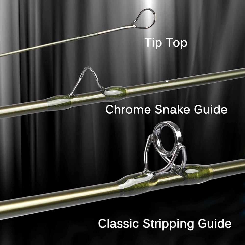 أدلة سلسة عالية الجودة - أدلة تجريد MaxSelect وأدلة ثعبان من الفولاذ المقاوم للصدأ مطلي بالكروم خفيفة الوزن للغاية وحلقة طرف كبيرة الحجم من أجل صب أكثر سلاسة لفترة أطول. مقبض فلين نقي ومقعد بكرة - مقبض فلين محيطي AA+ نقي لقبضة مريحة ومفيد أيضًا في الصب.