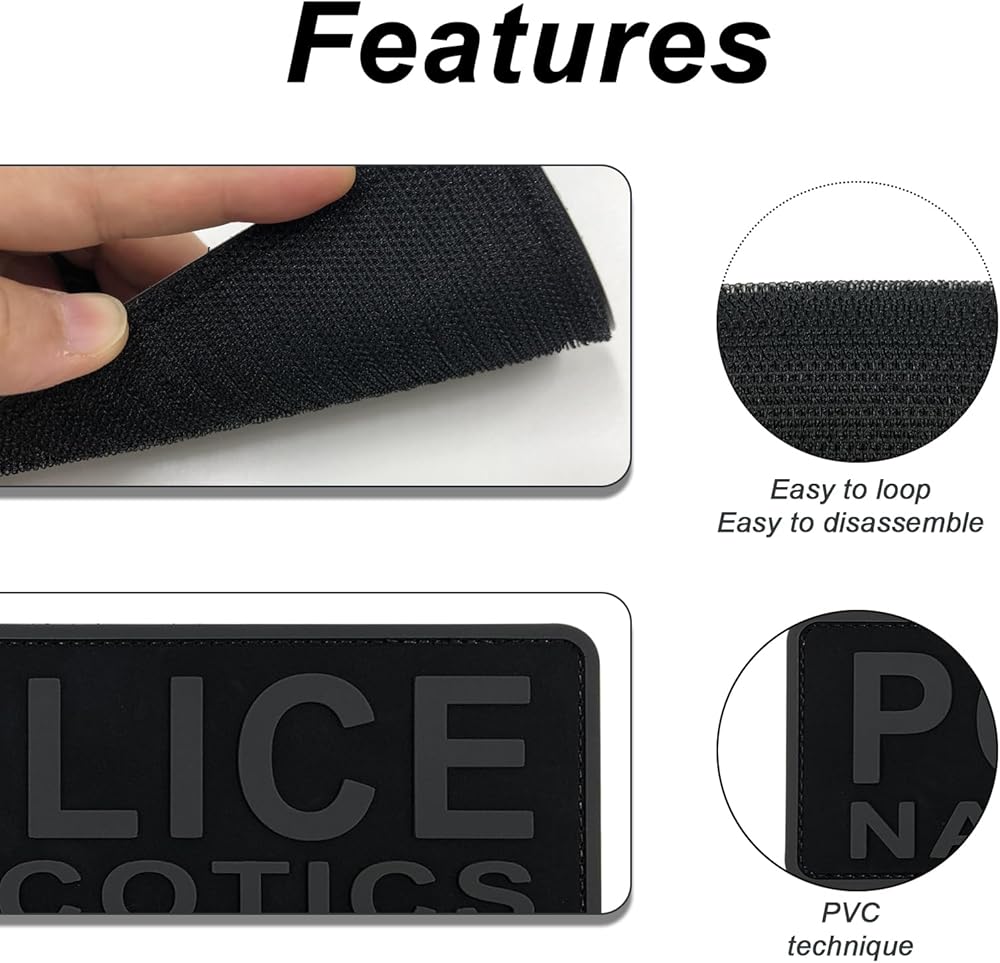 uuKen Large POLICE NARCOTICS Patch for Tactical Vest is sewn with hook fastener. The large pvcpatch is well made. Great for your gears like plate carrier, clothing,uniforms,vest, jacket, vest, bags backpacks,etc.
