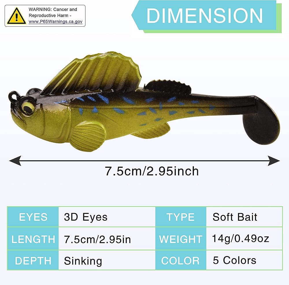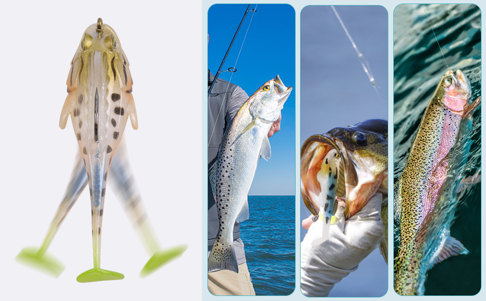 🐟 حركات تشبه الحياة: يتميز الطُعم البلاستيكي الناعم بذيل مجداف ثلاثي الأبعاد خاص، وله حركة ركل رائعة بسرعات بطيئة للغاية وسرعات متوسطة السرعة.