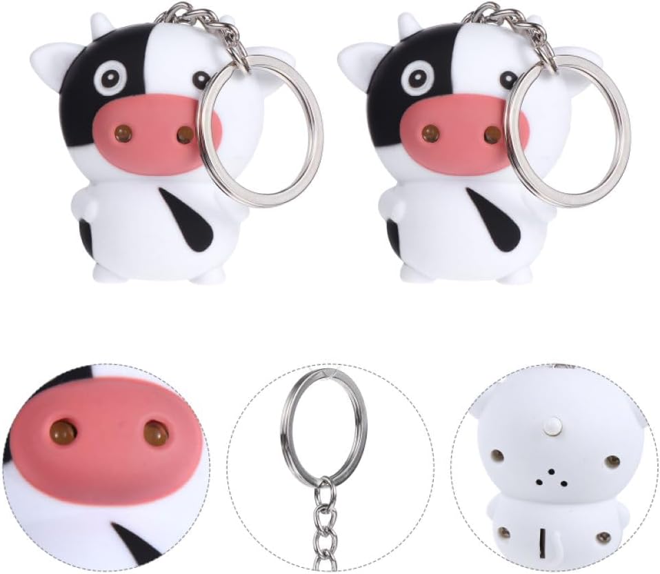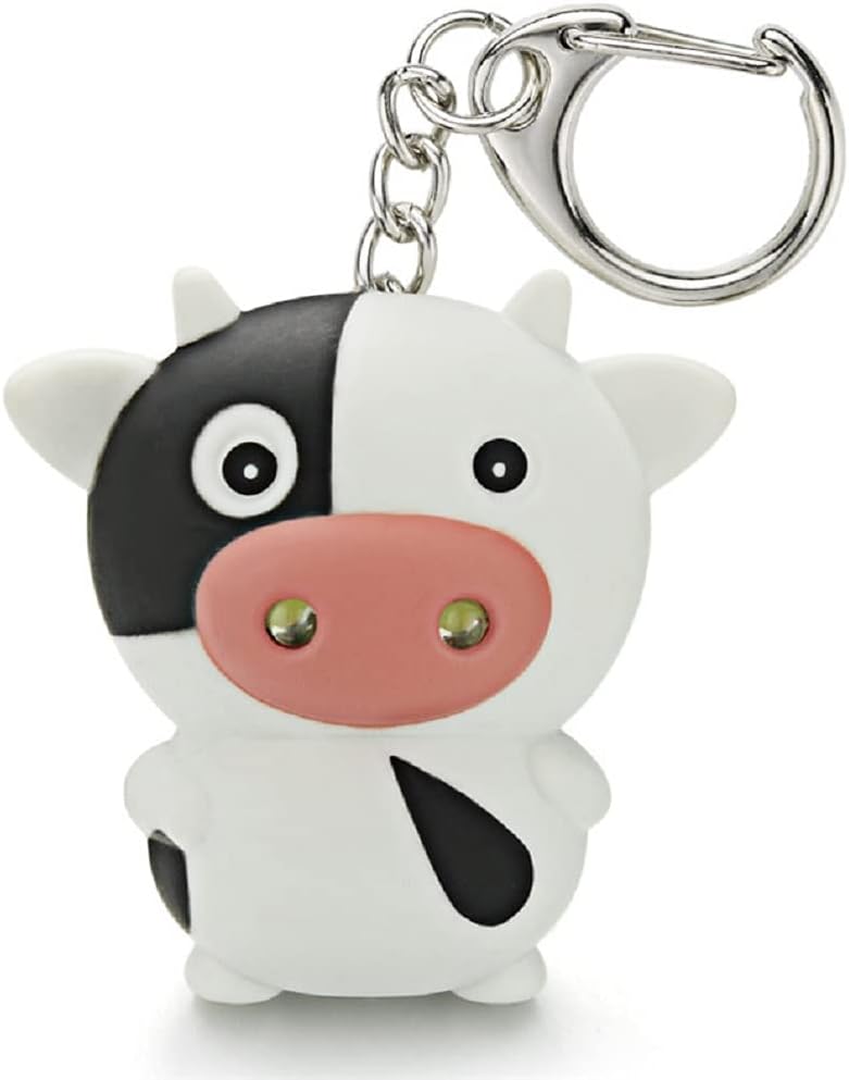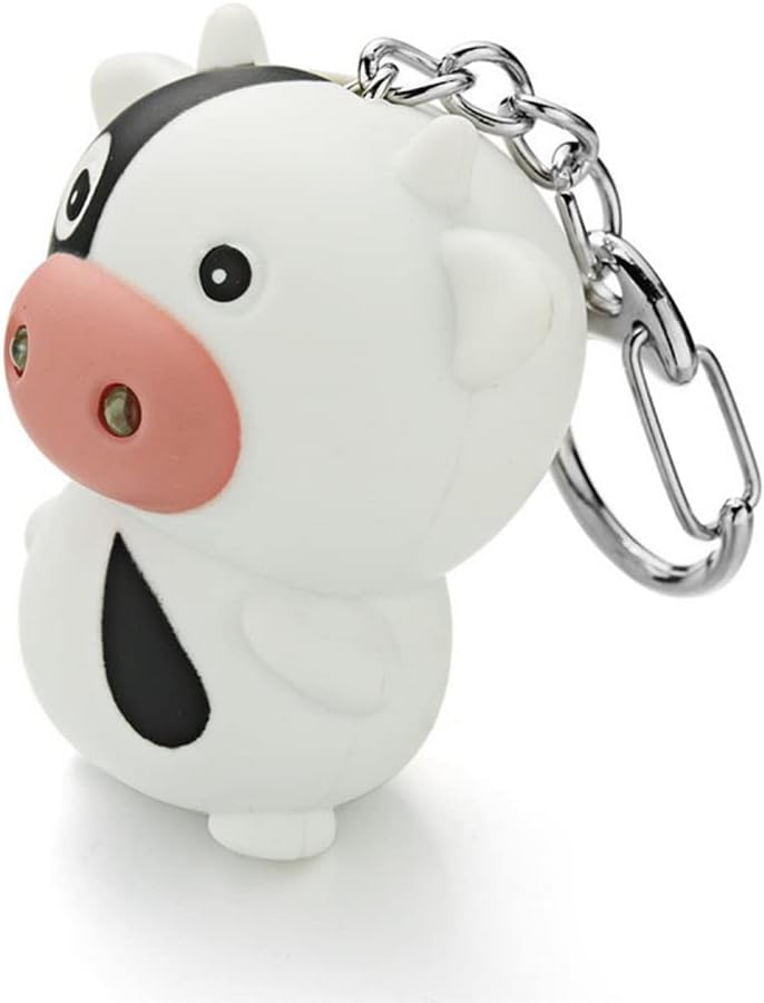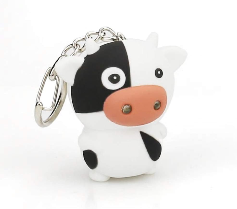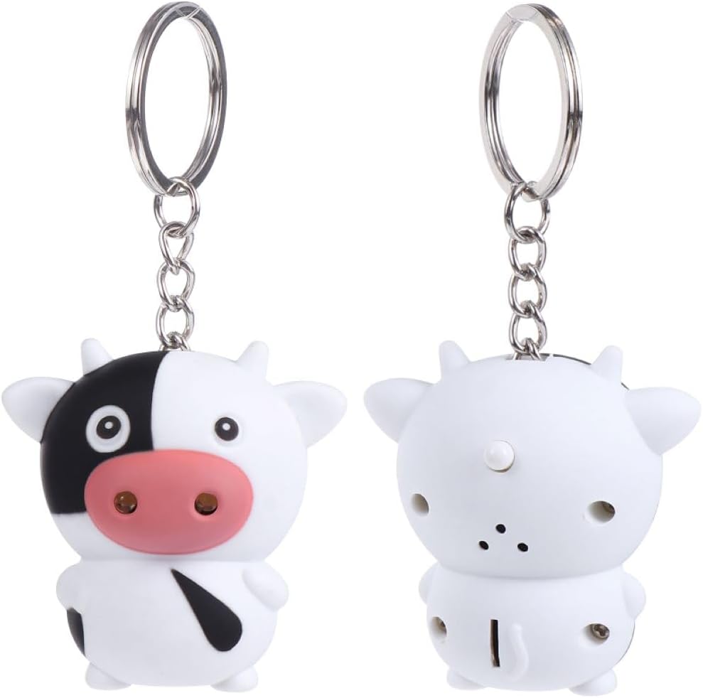 🐄[سلسلة مفاتيح LED بقرة مع صوت]*سلسلة مفاتيح صغيرة بمصباح بقرة LED مع صوت رائع
