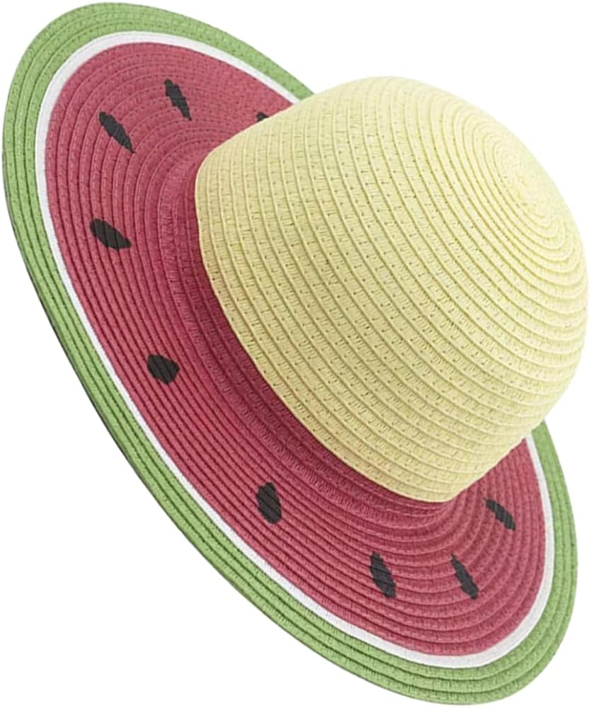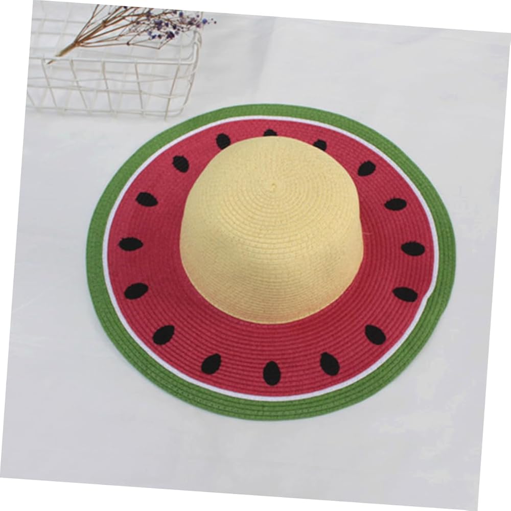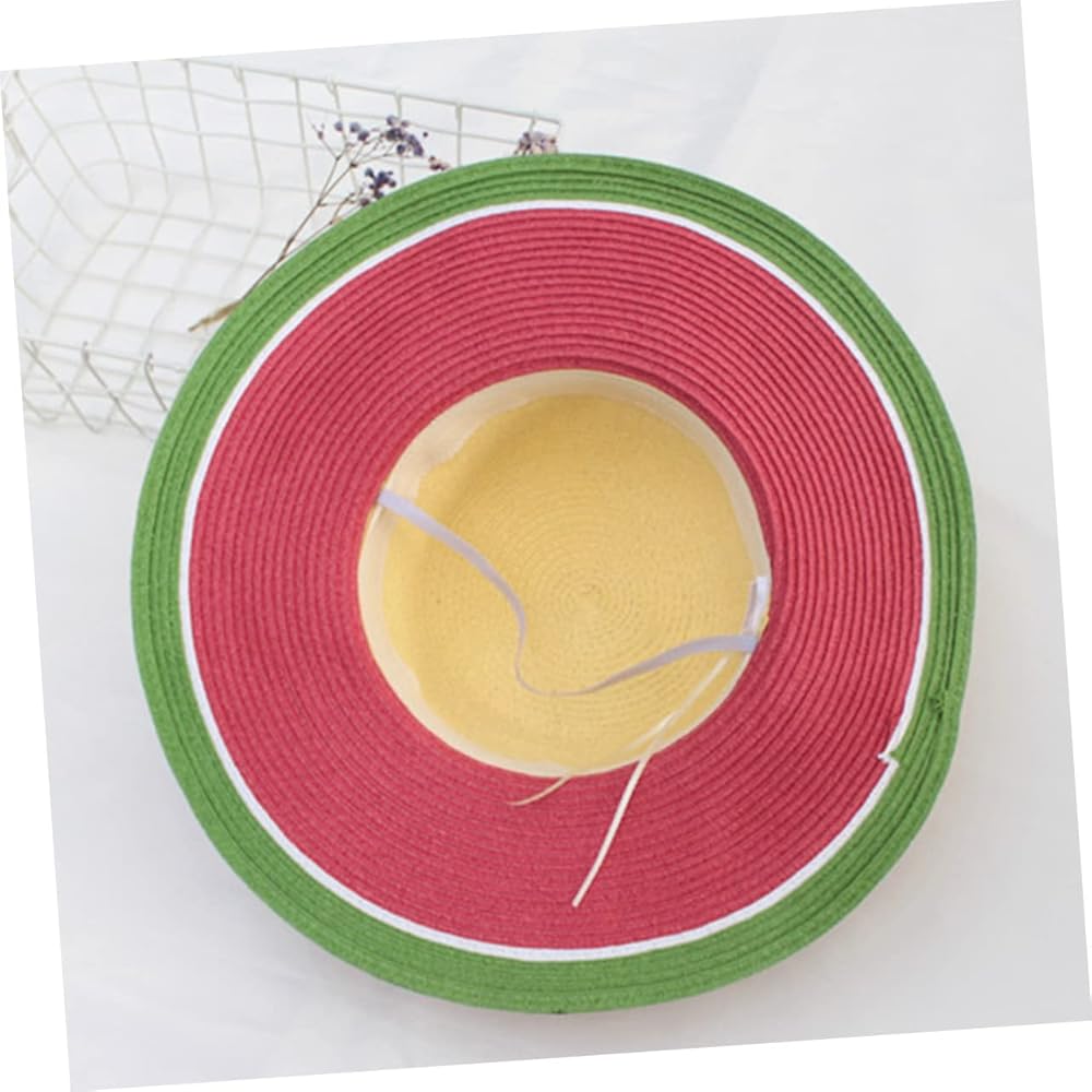 PRETYZOOM واقي من الشمس قبعة من القش قبعة من القش الصيفية قبعة من القش للشاطئ قبعة من القش البطيخ قبعة منسوجة من القش قبعات البطيخ قبعة الشمس المرنة للشاطئ قبعة من القش ذات حافة واسعة قبعة واسعة الحافة قبعة الشمس
