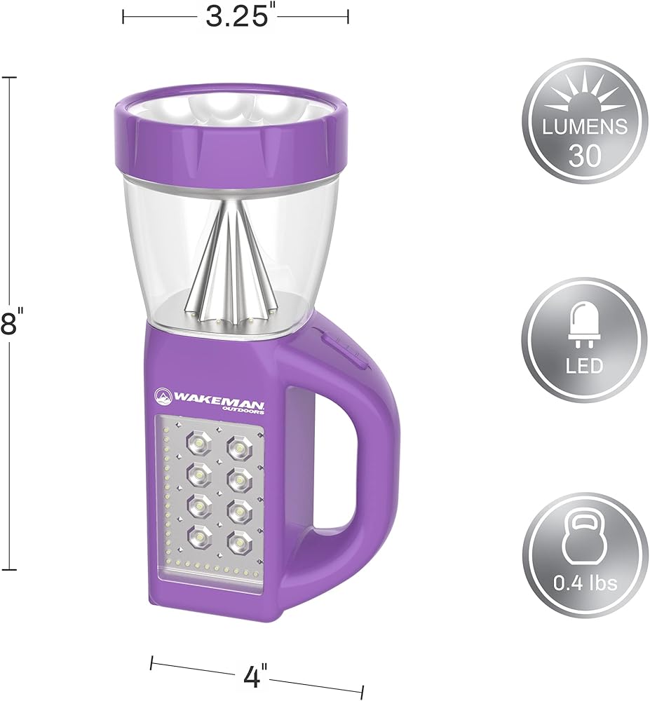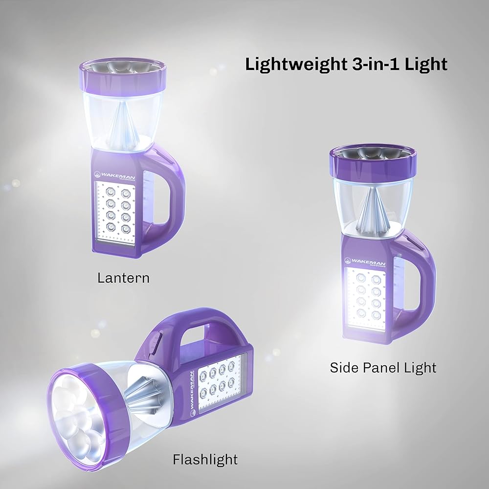 Illuminate your world, your way with the versatile 3-in-1 LED Lantern Flashlight Combo from Wakeman Outdoors. Offering three different lighting modes including a traditional lantern, a portable flashlight and side panel light option, this compact lamp provides the type of light you need, when you need it. This lightweight battery-operated lantern is the perfect choice for your outdoor needs like camping, hiking, backpacking, or fishing and is also great as an indoor light for reading and emergencies. SATISFACTION GUARANTEED- Wakeman Outdoors is committed to providing the consumer with the absolute best price and value on all of our products, which we ensure by applying a rigorous quality control process. NOTE: This is an exclusive product of Wakeman Outdoors and ONLY LED Lantern Flashlight Combos by Wakeman Outdoors are GUARANTEED to be genuine. IMPORTANT: Avoid buying counterfeit products and transacting with unauthorized sellers. Look for our logo on the packaging for every one of our products. Wakeman Outdoors is a registered trademark protected by U.S. Trademark law and will be vigorously defended.
