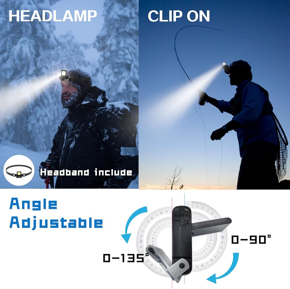 【مصباح أمامي خفيف الوزن وقابل للتعديل】المصابيح الأمامية LED الخاصة بنا مصنوعة من مادة أكريلونتريل بوتادين ستايرين الناعمة والسيليكون، وتزن 3.5 أونصة فقط. تصميمه خفيف الوزن وصغير الحجم يجعل من السهل حمله في جيبك. يسمح لك الرأس الدوار بضبط التركيز، مما يؤدي إلى تأثير ضوء أقوى وأكثر سطوعًا من المصابيح الأمامية التقليدية. يمكن أيضًا تعديل الضوء لأعلى ولأسفل بمقدار 90 درجة، مما يوفر إضاءة زاوية كاملة بدون بقع عمياء. هذا المصباح الأمامي القابل لإعادة الشحن مثالي للأنشطة الداخلية والخارجية.