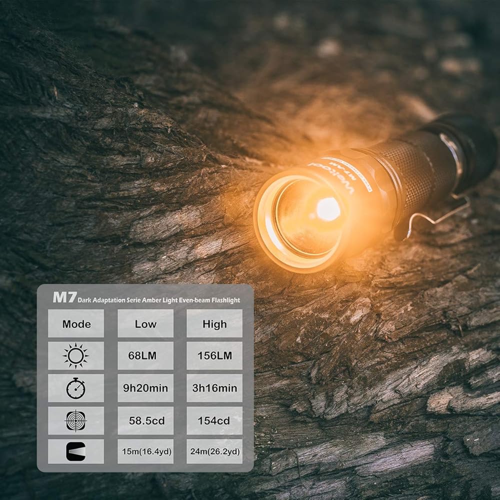 • M7-RD Red Beam (625 نانومتر): مثالي لعلماء الفلك والطيارين والصيادين للحفاظ على التكيف مع الظلام