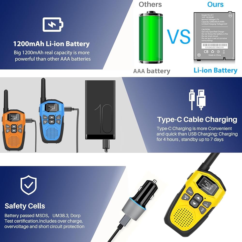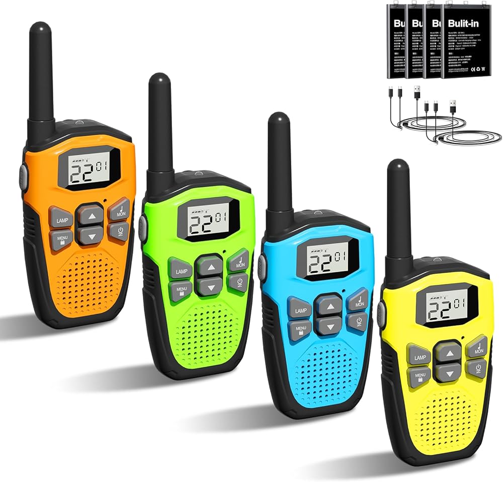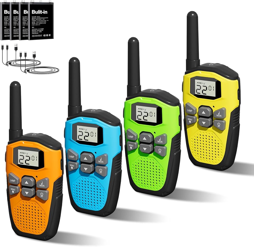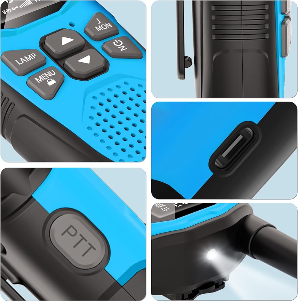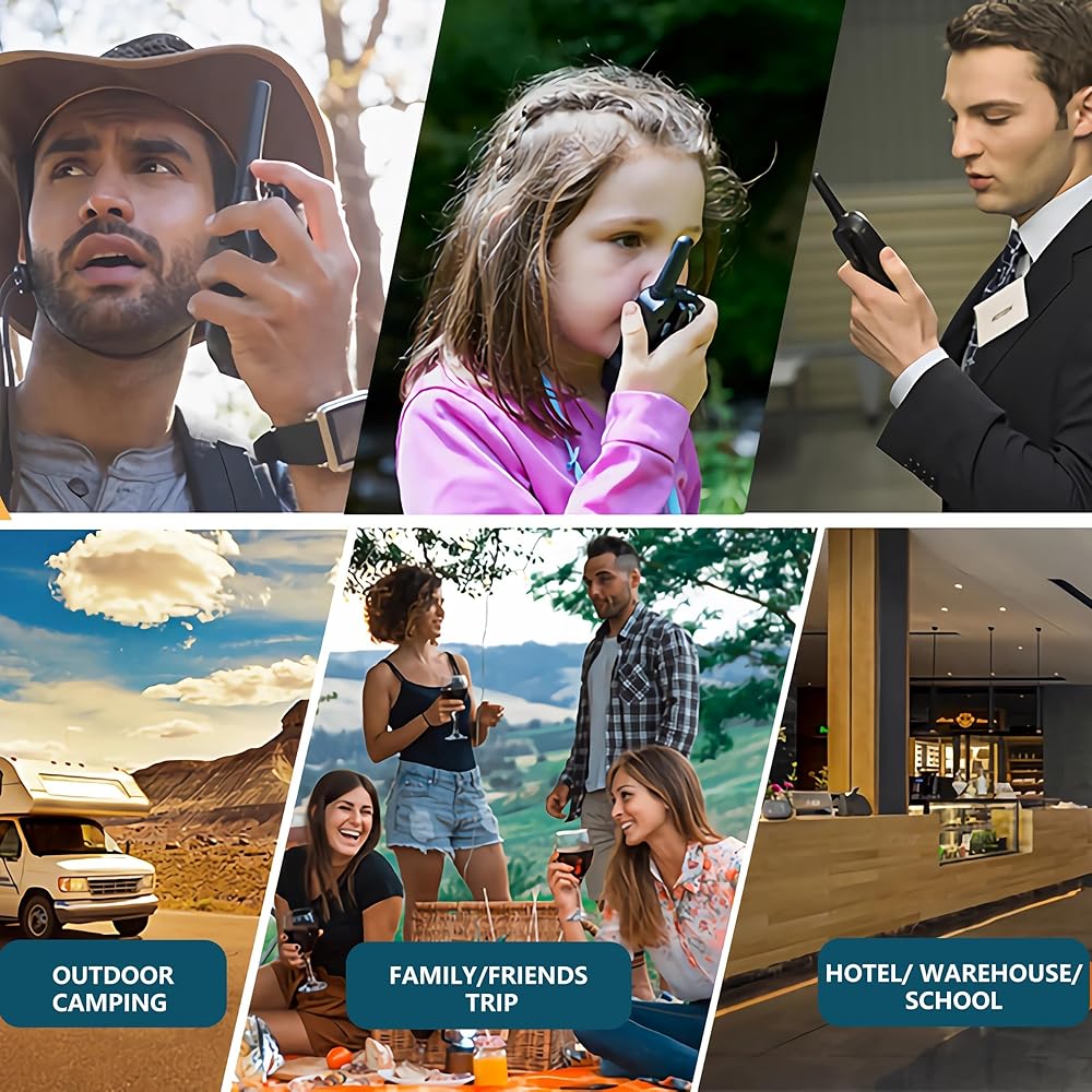 【مثالية لجميع الأعمار】تصميم عصري بسيط وأربعة ألوان زاهية متاحة، مجموعة من 4 أجهزة اتصال لاسلكية مقاومة للماء ستكون رائعة لجميع الأعمار. اخرج من هاتفك واستمتع بوقتك مع أطفالك وكبار السن وعائلتك وأصدقائك. مع مصباح يدوي يمكنك استخدامه ليلاً ونهارًا، مثالي للمنزل أو مكان العمل أو المغامرات الخارجية، مثل المزرعة أو المدرسة أو المستودع أو التخييم أو التنزه سيرًا على الأقدام أو التسلق أو الصيد أو ركوب الدراجات أو القوارب أو صيد الأسماك أو التزلج أو ركوب الدراجات أو رحلة الطريق، سفينة سياحية وما إلى ذلك.