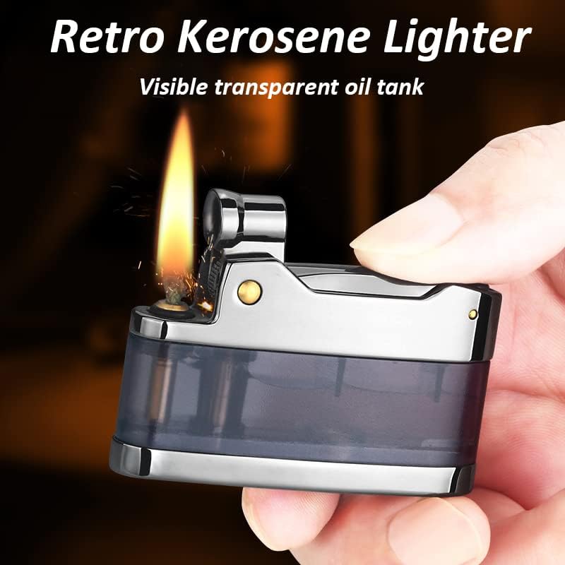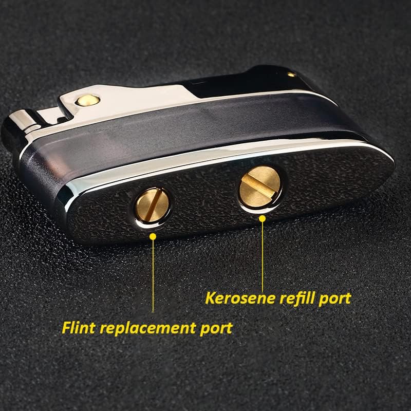 【High Quality & Flint Changeable】Adapt stainless steel grinding wheel, more durable and high ignition rate. Unlike other cheap plastic lighters, this lighter is made of zinc alloy and adopted surface plating technique, which made it more fashionable and beautiful. Retro style flint wheel ignition design. The flint wheel can be applied as a fire starter to light up a campfire by switching off the kerosene .