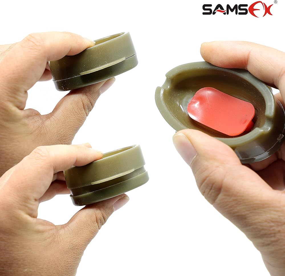 QUICK RELEASE MOULD: Press the red button at the bottom to remove bait or feeder outside the mould. There were 2 different moulds in the package for more bait making requirements