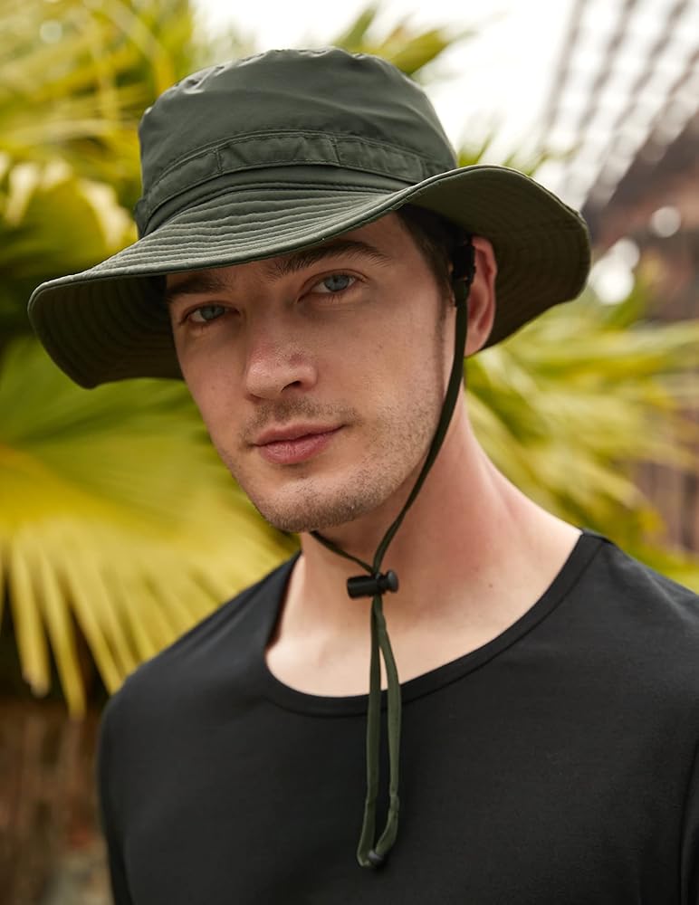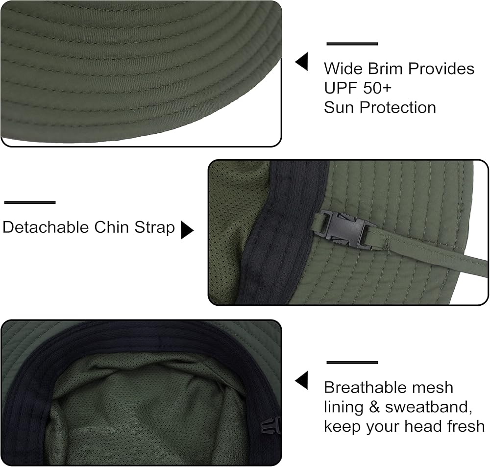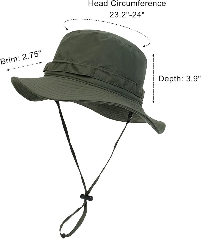 【مقاس واحد يناسب معظم الأشخاص】 قبعة سفاري كاجوال مريحة للرجال. مناسب لمحيط الرأس 23.2 بوصة - 24 بوصة (59-61 سم). مقاس واحد يناسب معظم مقاسات رأس الرجال. حزام ذقن قابل للتعديل لضمان أن القبعة يمكن أن تحافظ على ظروف مريحة حتى في الرياح القوية. إذا لم تكن هناك حاجة لذلك، يمكن أيضًا إزالة حزام الذقن دون التأثير على الاستخدام.