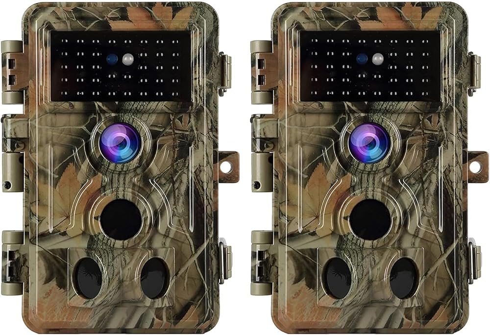 BLAZEVIDEO 2-Pack 48MP 1296P Trail Cameras Night Vision No Glow H.264 فيديو الحركة المنشط 0.1S وقت الزناد مقاوم للماء لصيد الحياة البرية في الهواء الطلق ومراقبة أمن المنزل