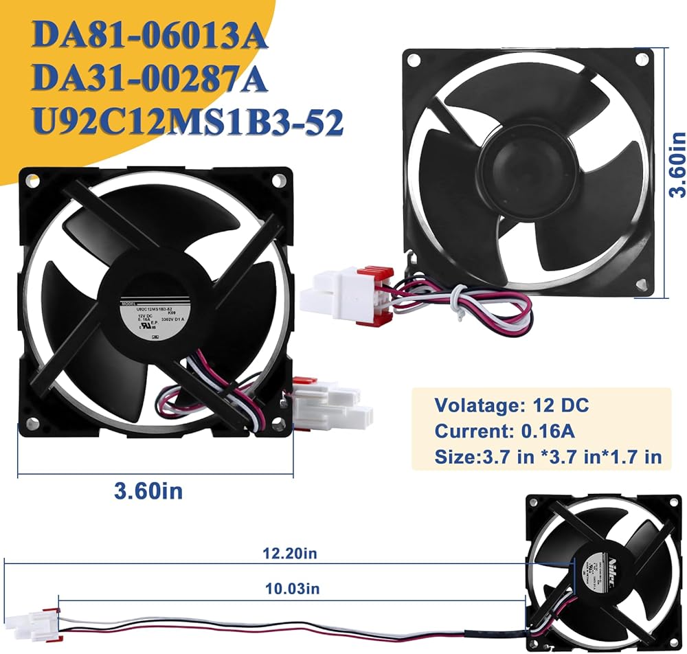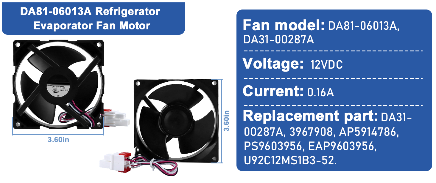𝗗𝗜𝗬 𝗜𝗻𝘀𝘁𝗮𝗹𝗹: محرك مروحة مبخر الثلاجة DA31-00287A يحتاج فقط إلى مفك براغي وقفاز عمل. قم بإيقاف التشغيل ثم قم بتحريك الدرج لإزالة اللوحة والمروحة القديمة في الجانب الخلفي وتوصيل واحدة جديدة، وتشغيل جهازك في وقت قصير. وفر لك 90% مقارنة باستئجار شخص ما لإصلاحه أو شراء منتج جديد، كما أنك حصلت على تجربة فريدة وسعادة بنفسك