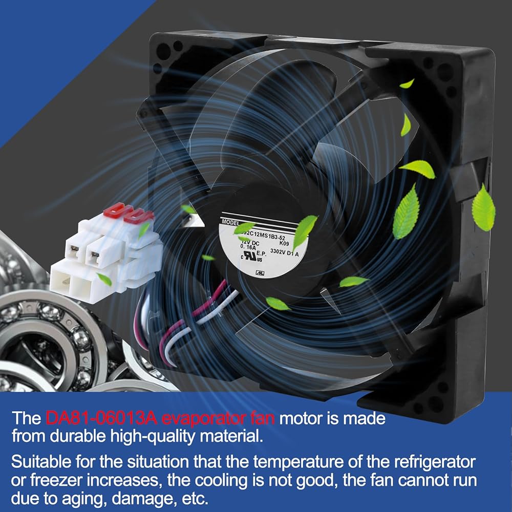 𝗦𝗼𝗹𝘃𝗲 𝗤𝘂𝗲𝘀𝘁𝗶𝗼𝗻: يساعدك محرك مروحة الثلاجة DA81-06013A بشكل فعال على حل الثلاجة أو الفريزر ساخنًا جدًا، وعدم التبريد على الإطلاق، وتأثير التبريد السيئ، ودرجة حرارة الثلاجة غير الطبيعية، وتقادم مروحة مبخر الثلاجة أو تلفها ومشاكل أخرى، مما يجعلها بديلاً مثاليًا لجهازك محرك مهترئ أو معطل