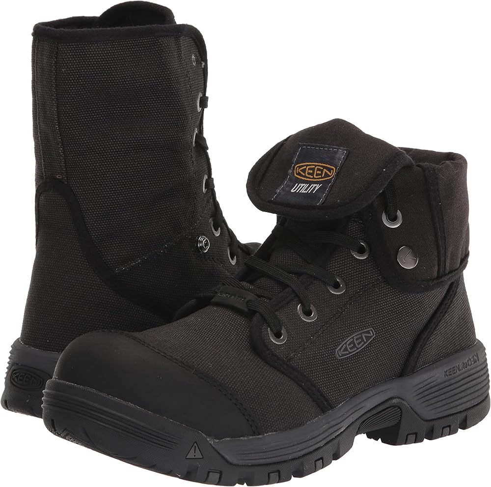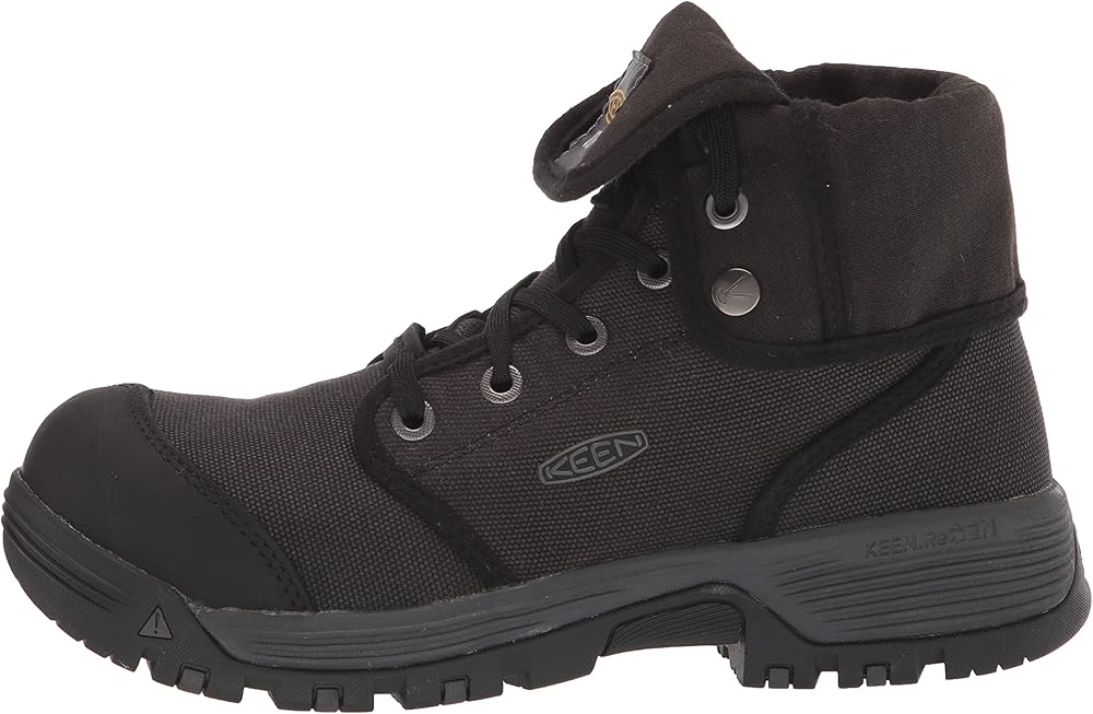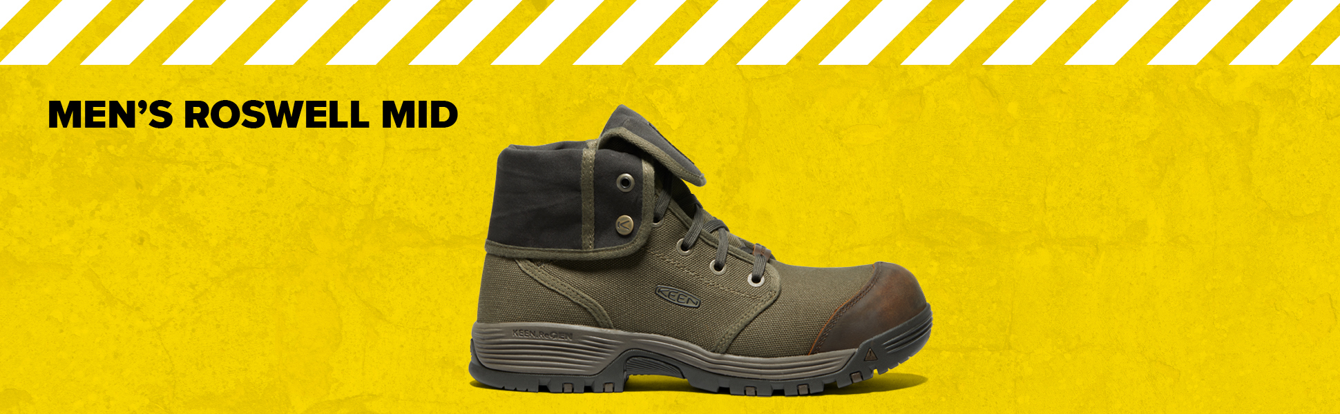We took the concept of lightweight durability and turned it into a boot. The Roswell features a breathable canvas upper that easily folds down to give you multiple wear options. KEEN.ReGEN midsole cushioning offers 50% energy return with every step, and non-metallic, carbon-fiber toes. Weighing 22.6 oz / 542 g (per boot) and featuring a moisture-wicking lining, these water-resistant work boots for men are built off KEEN's traditional wider footwear form. KEEN Utility products offer removable insoles. These dependable work boots are great for medium-duty work in construction, transportation, maintenance, landscaping, and utilities. All KEEN Utility products use a natural, technology called CleansportNXT for breaking down odor in sweat; while also sourcing leather from tanneries certified by the Leather Working Group (LWG) which is the gold-standard for responsibly sourced leather. KEEN Utility believes in creating work boots that make work and life better. From helping put veterans back on their feet to supporting conservation corps work across the country, KEEN Utility puts good to work, first.