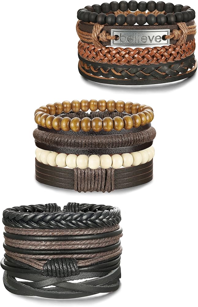 مجموعة أساور بأسعار معقولة: طلب واحد يتضمن 12 قطعة من الأساور الجلدية الملفوفة بأنماط مختلفة، نمط متعدد يمنحك ارتداء Chioce بشكل متكرر كل يوم، سعر معقول احتياطي للشراء