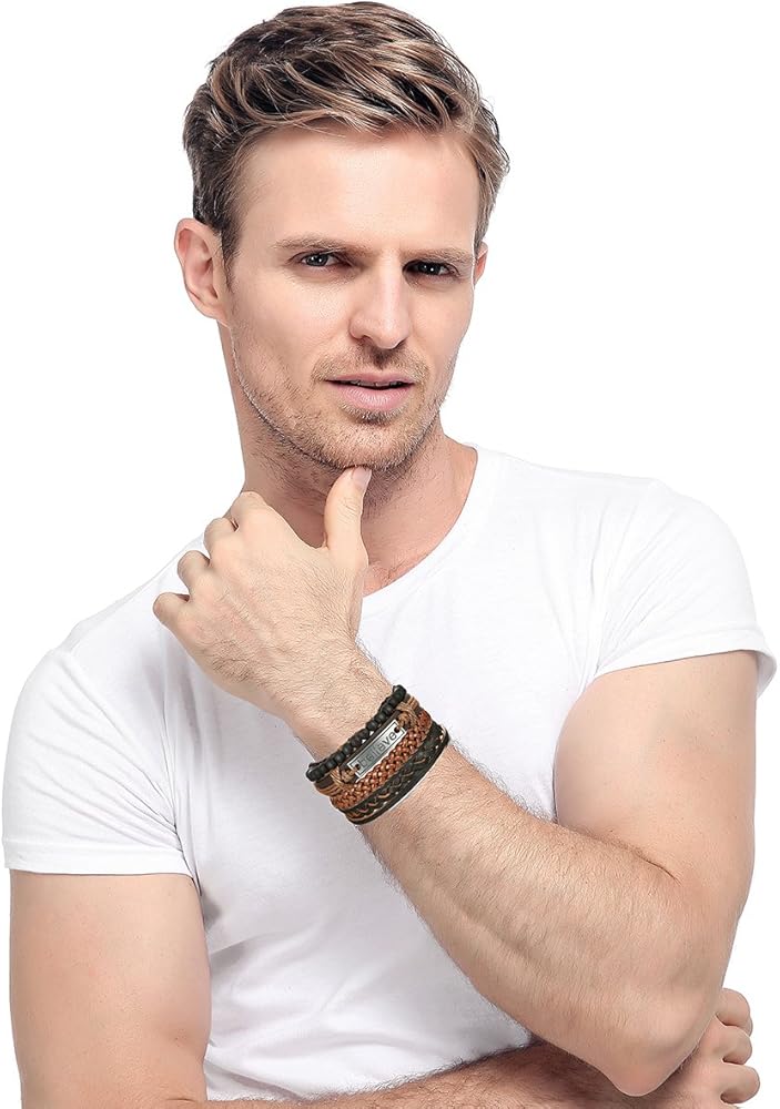 خامة عالية الجودة: صناعة يدوية رائعة، مصنوعة من مادة جلدية مضفرة ناعمة، سوار من الجلد باللونين البني والأسود، لا يصبح قديم الطراز أبدًا، شعور مريح عند الارتداء، وقت طويل في الاستخدام