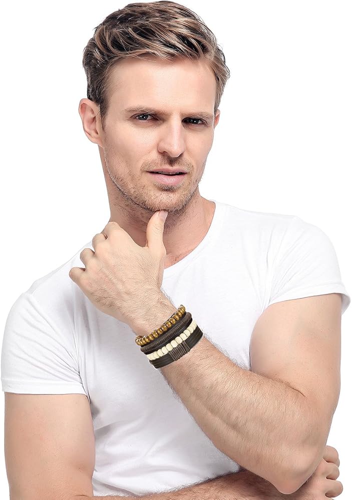 مظهر عتيق وعتيق: أساور جلدية سوداء وأساور بنية بنمط عتيق، يمكنك ارتداؤها معًا أو بشكل منفصل؛ عصري وكلاسيكي، مناسب للنساء والرجال؛ يتماشى جيدًا مع أي ملابس، أظهر شخصيتك في كل لحظة