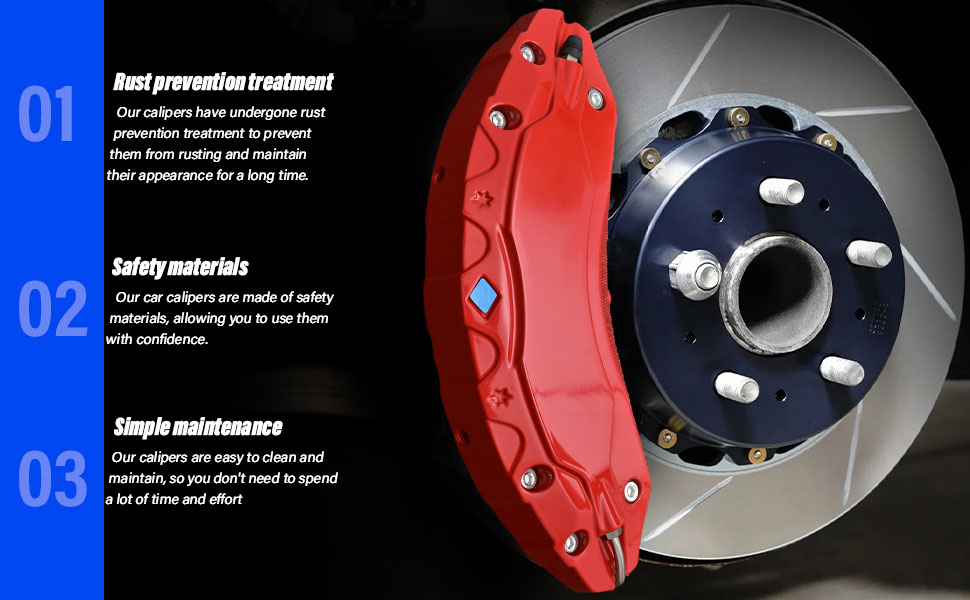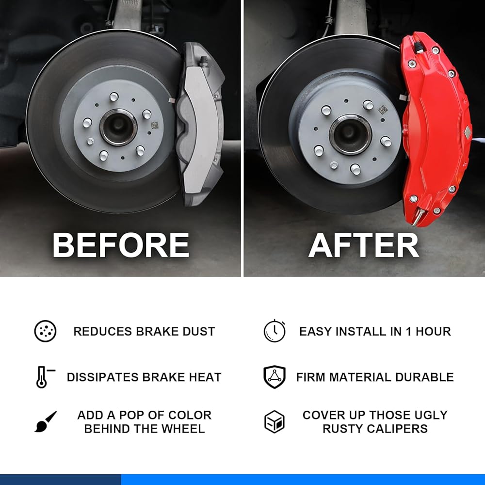 • 【تصميم مناسب تمامًا】تم تصميم هذه المجموعة من أغطية فرجار الفرامل من قبل فريق محترف لتناسب جميع مواصفات أحجام السيارة الأصلية تمامًا. إنه أكثر أمانًا وموثوقية من المنتجات المشابهة، وقد خضع كل غطاء فرجار الفرامل لاختبارات صارمة.