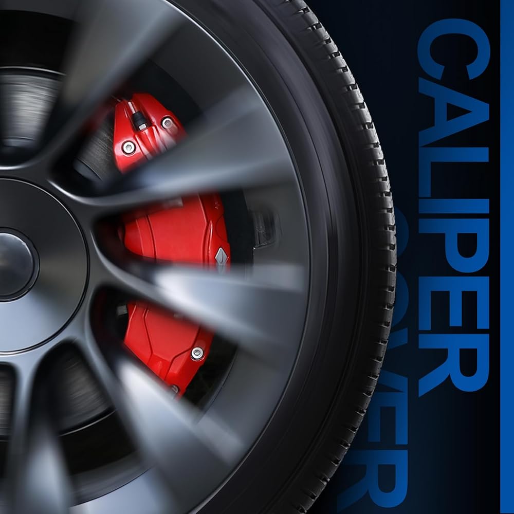مجموعة أغطية الفرجار مكونة من 4 قطع متوافقة مع ملحقات Tesla Model Y، 2020-2024 19 20 بوصة لمحور العجلات الأمامية والخلفية لأغطية الفرجار، مناسبة لفرجار الفرامل الأحمر Tesla Model Y (لا تناسب طراز Tesla 3)