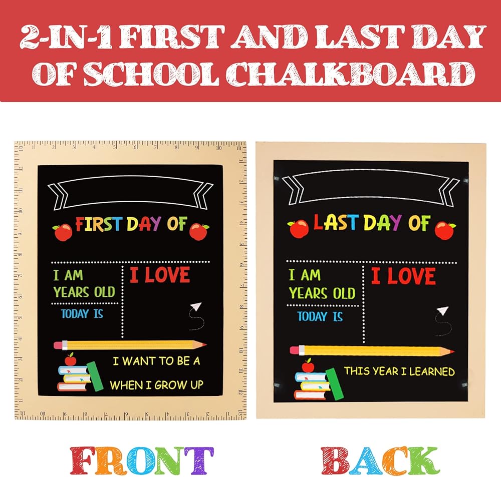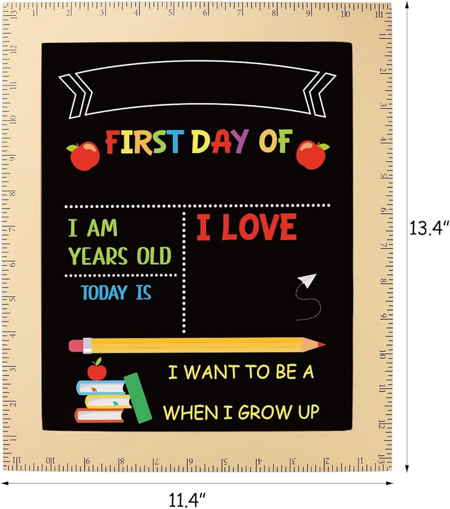 لوحة اليوم الأول والأخير للمدرسة - لافتة اليوم الأول للمدرسة مع إطار مسطرة خشبية - دعامة صور سبورة اليوم الأول من رياض الأطفال لمرحلة ما قبل المدرسة - هدايا العودة إلى المدرسة للأطفال البنات - 13 × 11 بوصة