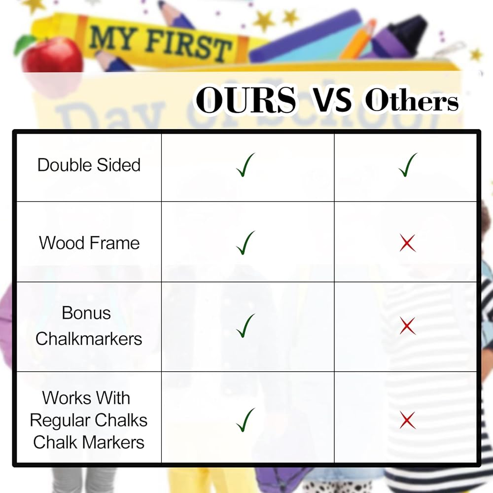 • السبورة ذات وجهين حتى تتمكن من استخدام نفس اللافتة في اليوم الأول والأخير من المدرسة!