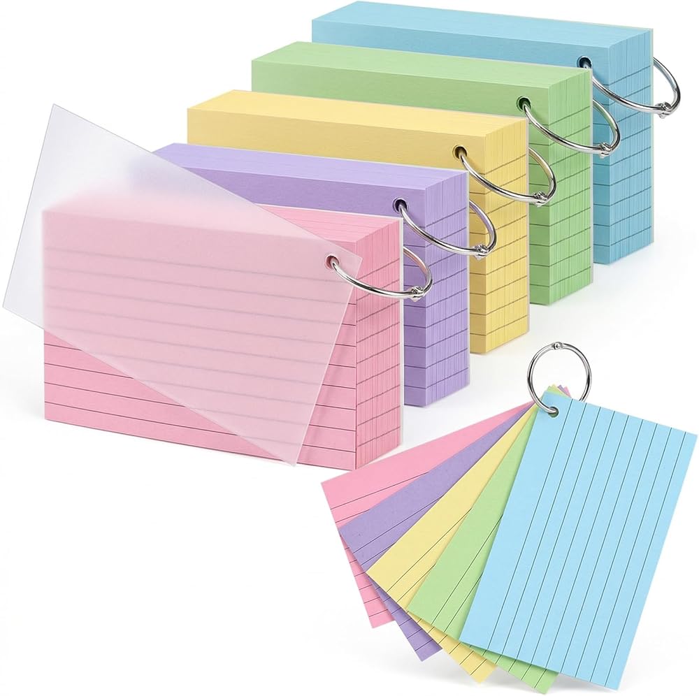 مجموعة قيمة للغاية - تحتوي هذه المجموعة على 250 بطاقة فهرس، مقاس كل منها 3x5 بوصة، مع 50 بطاقة في كل لون من الألوان الخمسة: الأصفر الفاتح، والأزرق الفاتح، والأرجواني الفاتح، والأخضر الفاتح، والوردي الفاتح. هذه التشكيلة الوفيرة تلبي متطلبات الدراسة والعمل اليومية الخاصة بك.