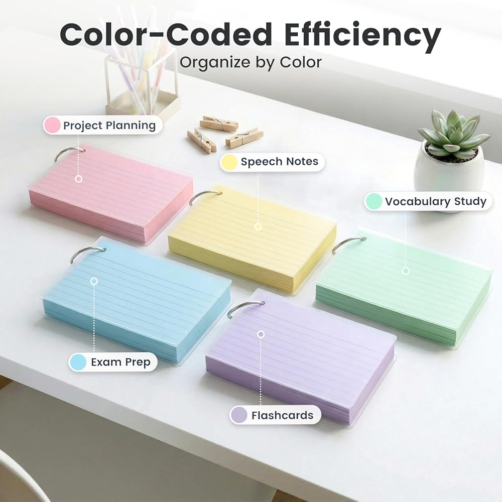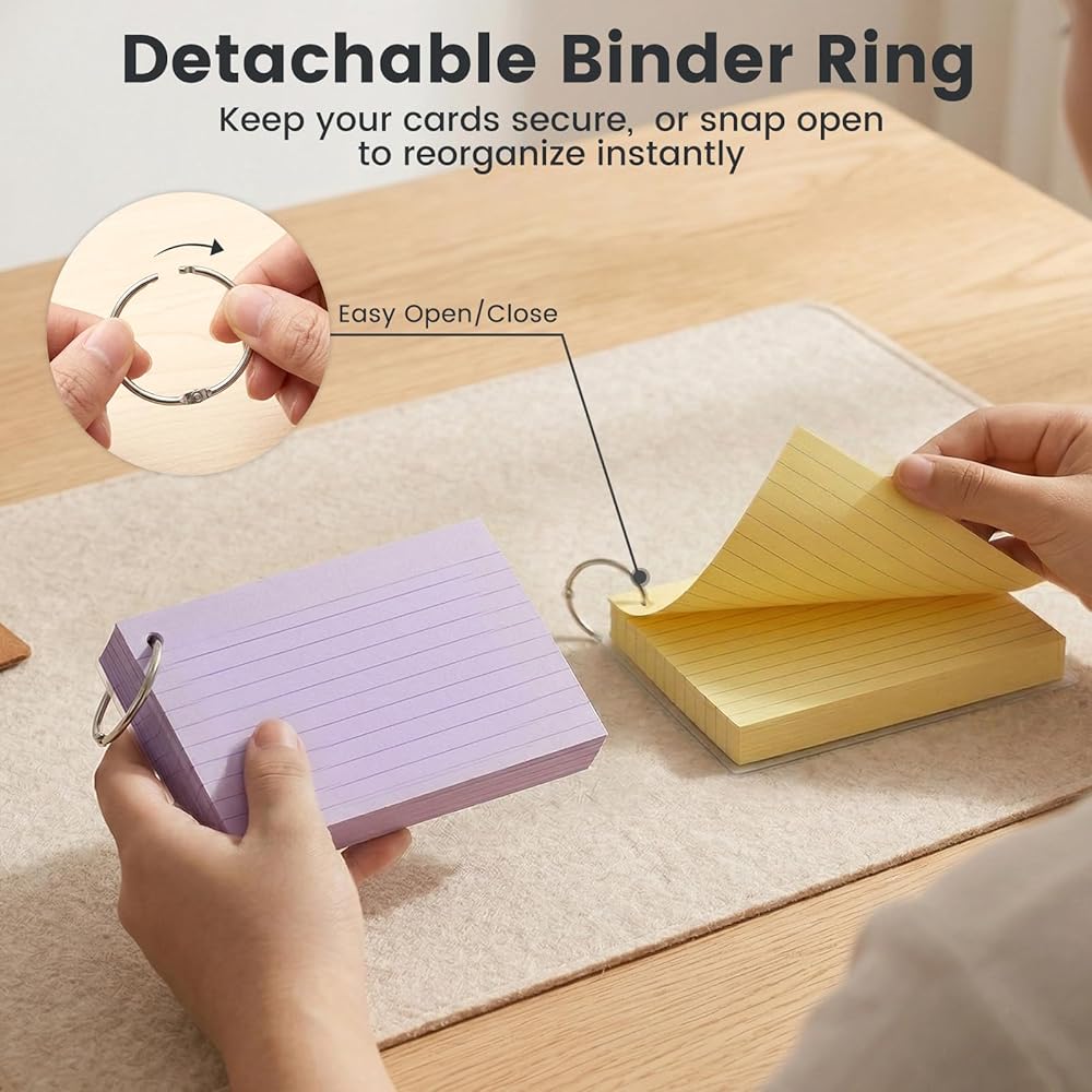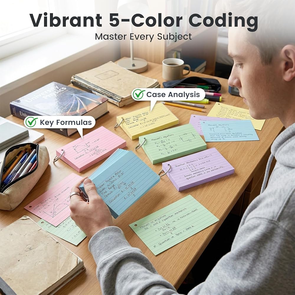 تطبيق واسع - بطاقات الفهرس المبطنة هي أدوات متعددة الاستخدامات مناسبة للدراسة المنهجية للكلمات والصيغ والحساب عبر إعدادات مختلفة بما في ذلك العمل المكتبي والأعمال التجارية والجامعة والكلية والمدرسة والتعليم. إنها مثالية للتحضير للاختبارات والامتحانات والمراجعات وتدوين الملاحظات والمزيد.