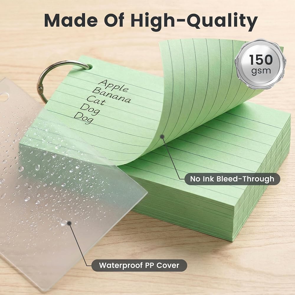 جودة عالية - مصنوعة من ورق فاخر، تتميز بطاقات المراجعة الخاصة بنا بملمس ناعم وسميك، مما يضمن التوافق مع الأقلام المختلفة دون مشاكل تسرب الحبر. إنها صديقة للبيئة ومقاومة للتجاعيد، مما يضمن المتانة والموثوقية لاحتياجات الدراسة والعمل الخاصة بك.