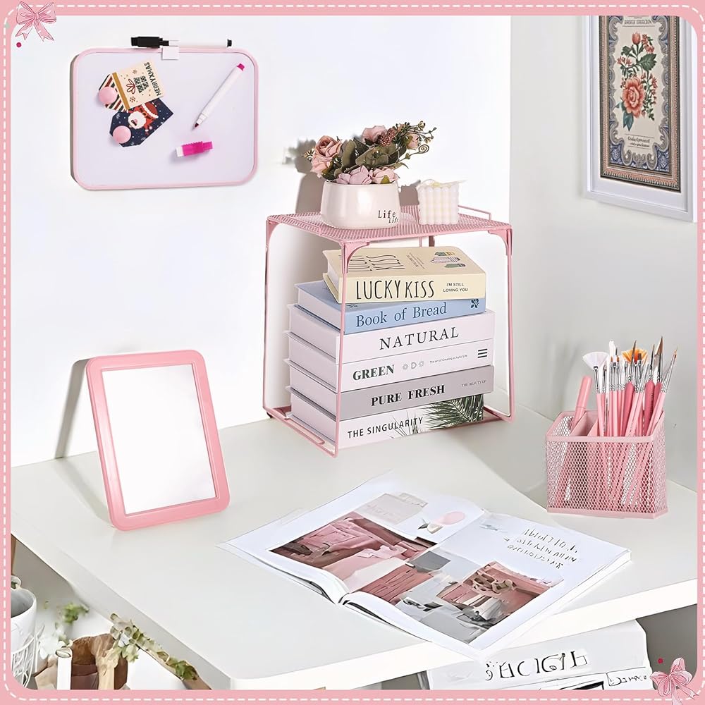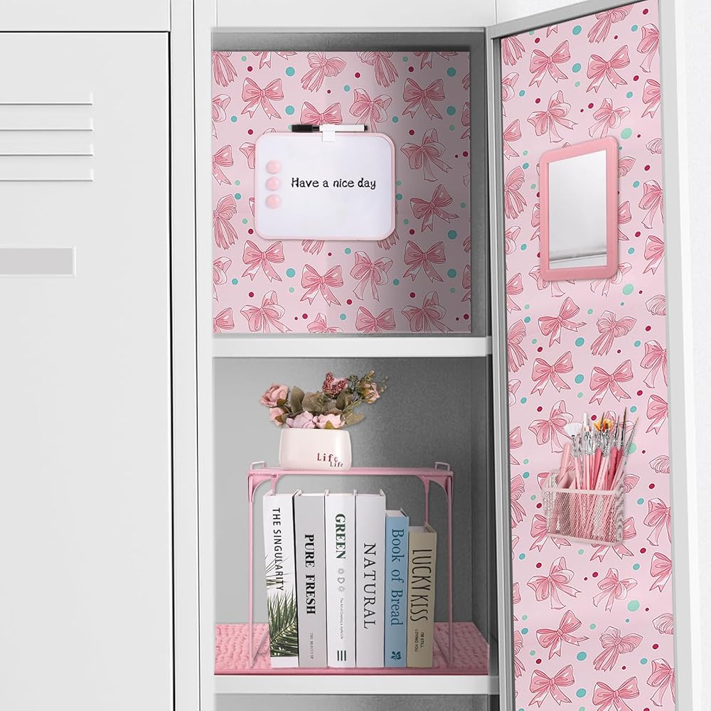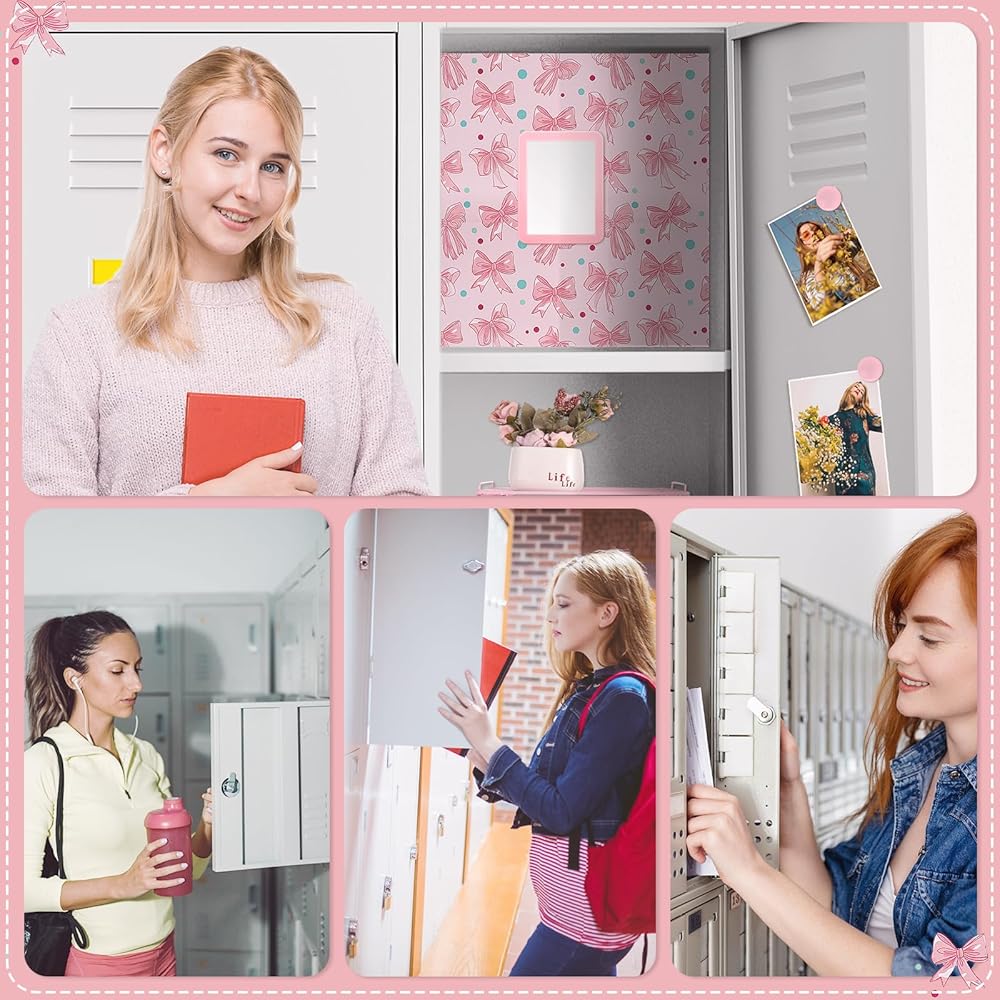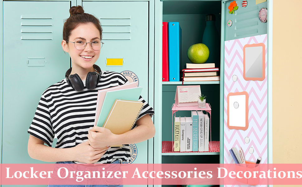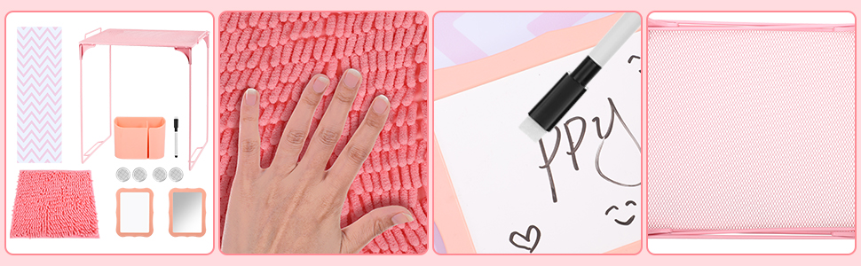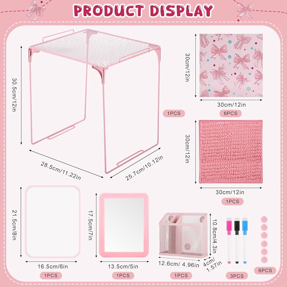 BESARME 16 PCS ملحقات الخزانة الوردي رف الخزانة للبنات بما في ذلك خلفية مغناطيسية سجادة مرآة على لوح ميرور رف تنظيم العودة إلى مدرسة مكتب الحفلة المدرسية