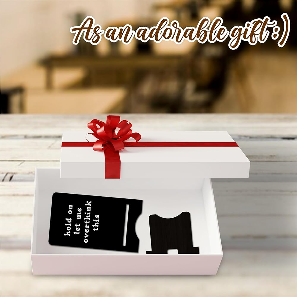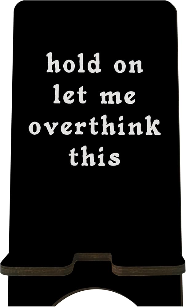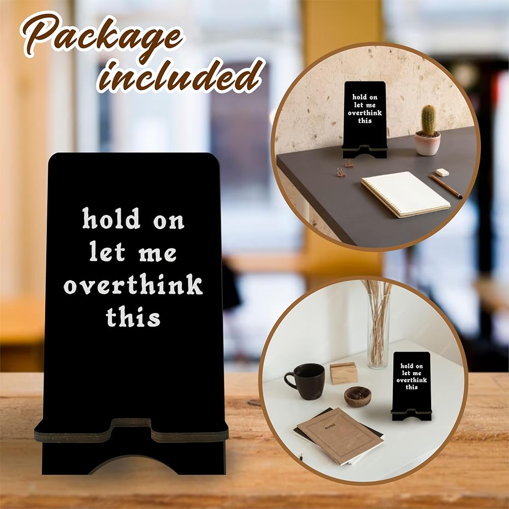 حامل هاتف خشبي مضحك - انتظر دعني أفكر في هذا - حامل هاتف خلوي أسود، محطة تغيير للهواتف الذكية، الكتب الإلكترونية، الأجهزة اللوحية، منظم سطح المكتب، ديكورات المنزل والمكتب - A13