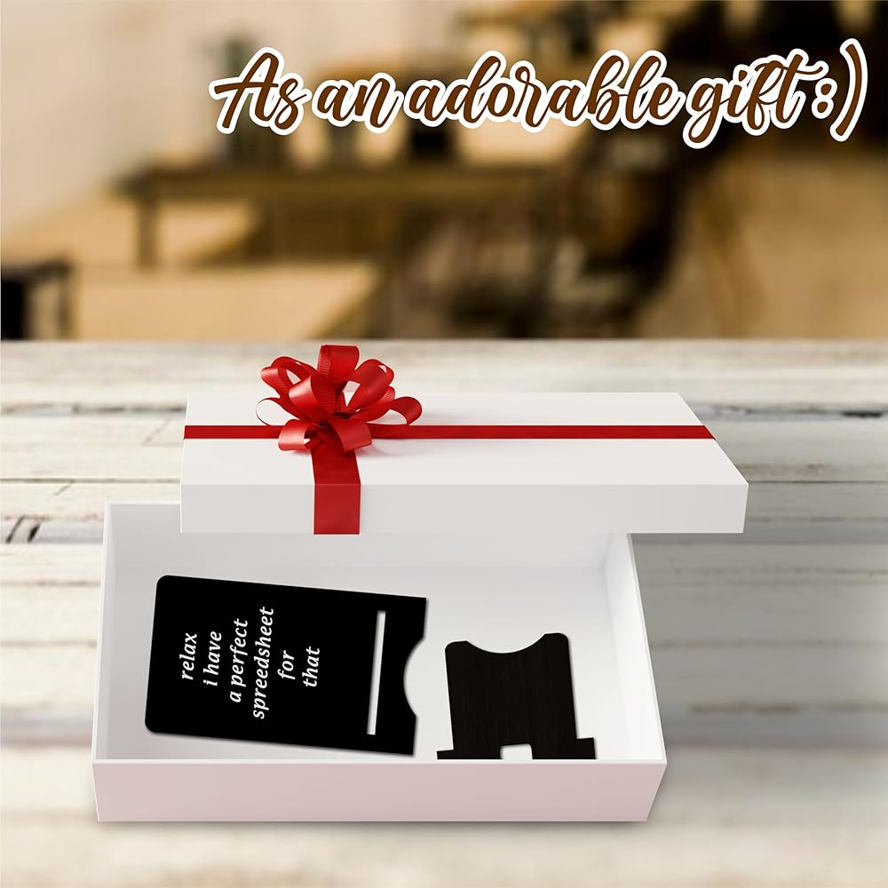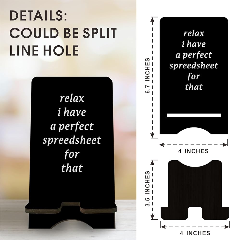 حامل هاتف خشبي مضحك - استرخ لدي جدول بيانات مثالي لذلك - حامل هاتف محمول أسود، محطة تغيير للهواتف الذكية، الكتب الإلكترونية، الأجهزة اللوحية، منظم سطح المكتب، ديكورات المنزل والمكتب - A14