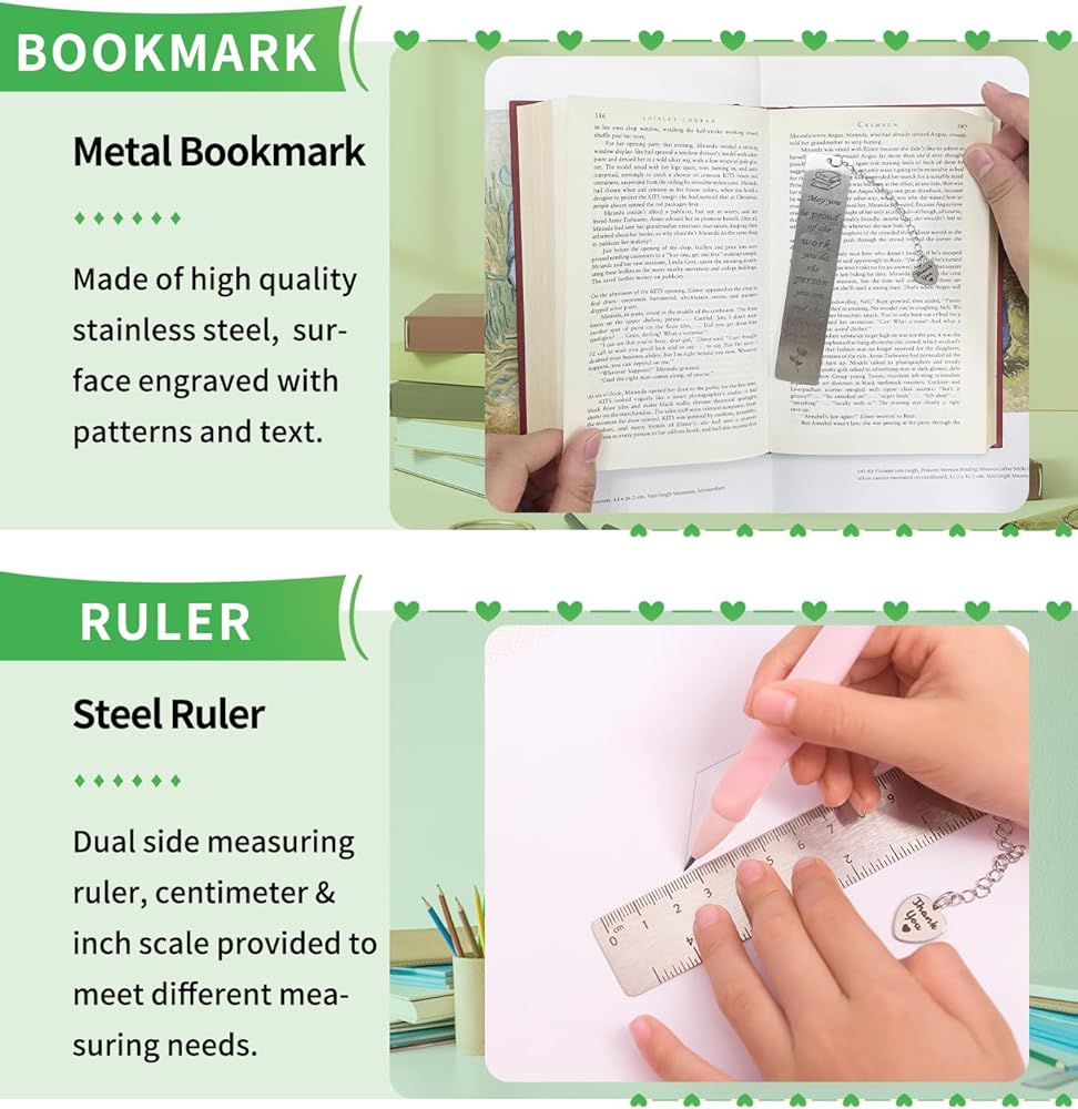 مسطرة مرجعية متعددة الاستخدامات: أداة مزدوجة الأغراض تعمل كعلامة مرجعية ومسطرة، مما يعزز تجارب القراءة والقياس. يمكن للمسطرة الصغيرة القياس بالسنتيمتر والبوصة، بمقاييس تبدأ من الصفر للحصول على دقة دقيقة.