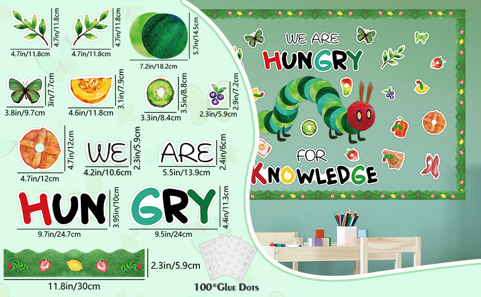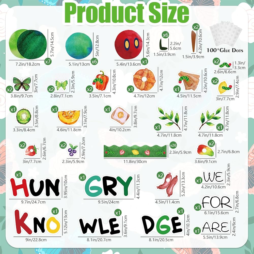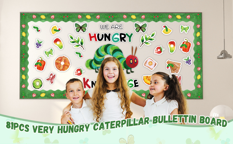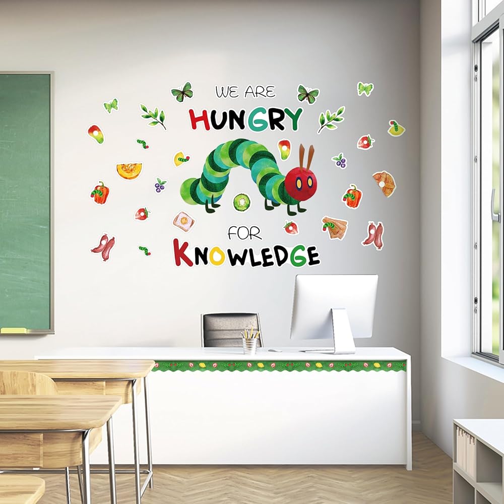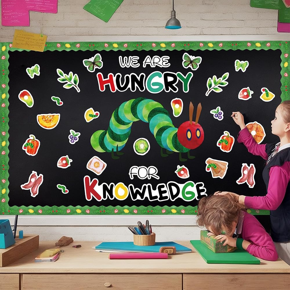 ديكور الفصل الدراسي كاتربيلر جائع، 81 قطعة لوحة إعلانات كاتربيلر جائعة جدًا مجموعة تزيين للمعلمين للعودة إلى المدرسة لوازم كاتربيلر موضوع DIY مشاريع ديكور جدار الباب