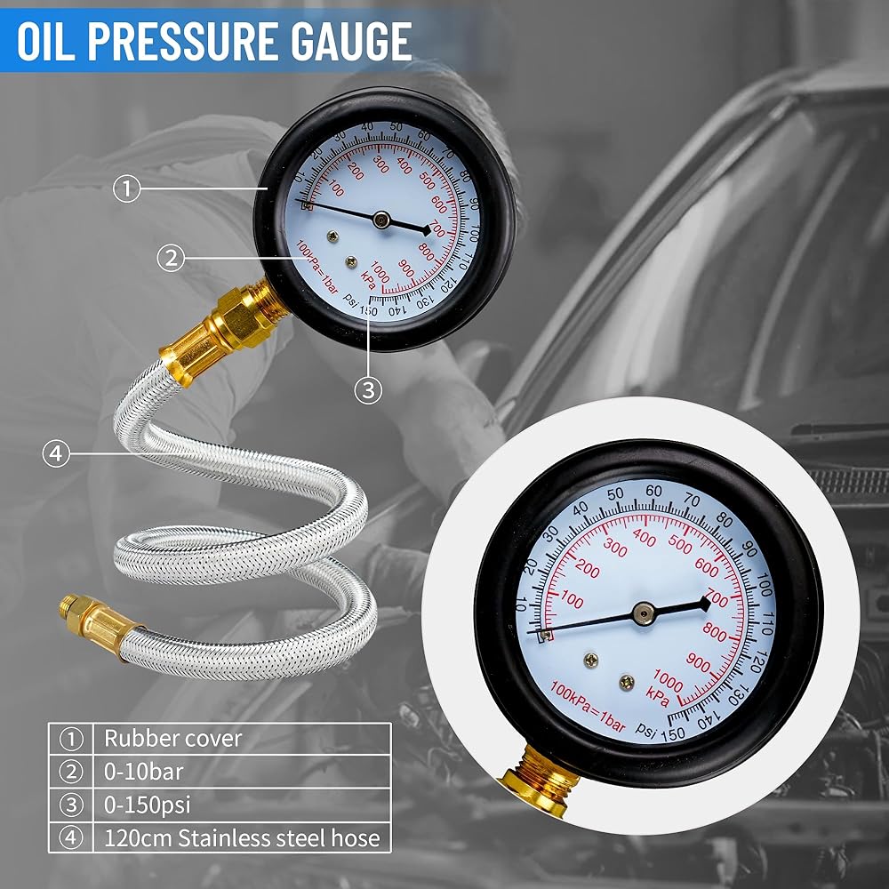 الوظيفة: يستخدم مقياس الضغط لمضخة الزيت بشكل أساسي لقياس نظام ضغط الزيت لمختلف المركبات ذاتية العمل. من أجل قياس حالة تشغيل مضخة الزيت ودائرة الزيت، قد يكون هناك انسداد أو تسرب زيت في دائرة الزيت، مما يمكنه اكتشاف الأخطاء على الفور وتشغيل المحرك بشكل طبيعي. نطاق القياس: 0-1000 كيلو باسكال، 0-150 رطل لكل بوصة مربعة. مستوى الدقة: المستوى 4.