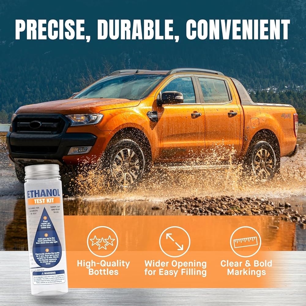 - Reusable E85 Tester with spill-free larger opening, bold markings, and heat-resistant bottles.
