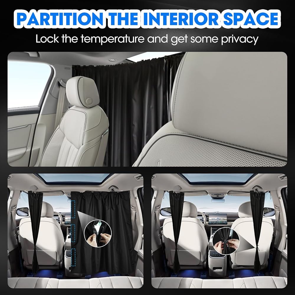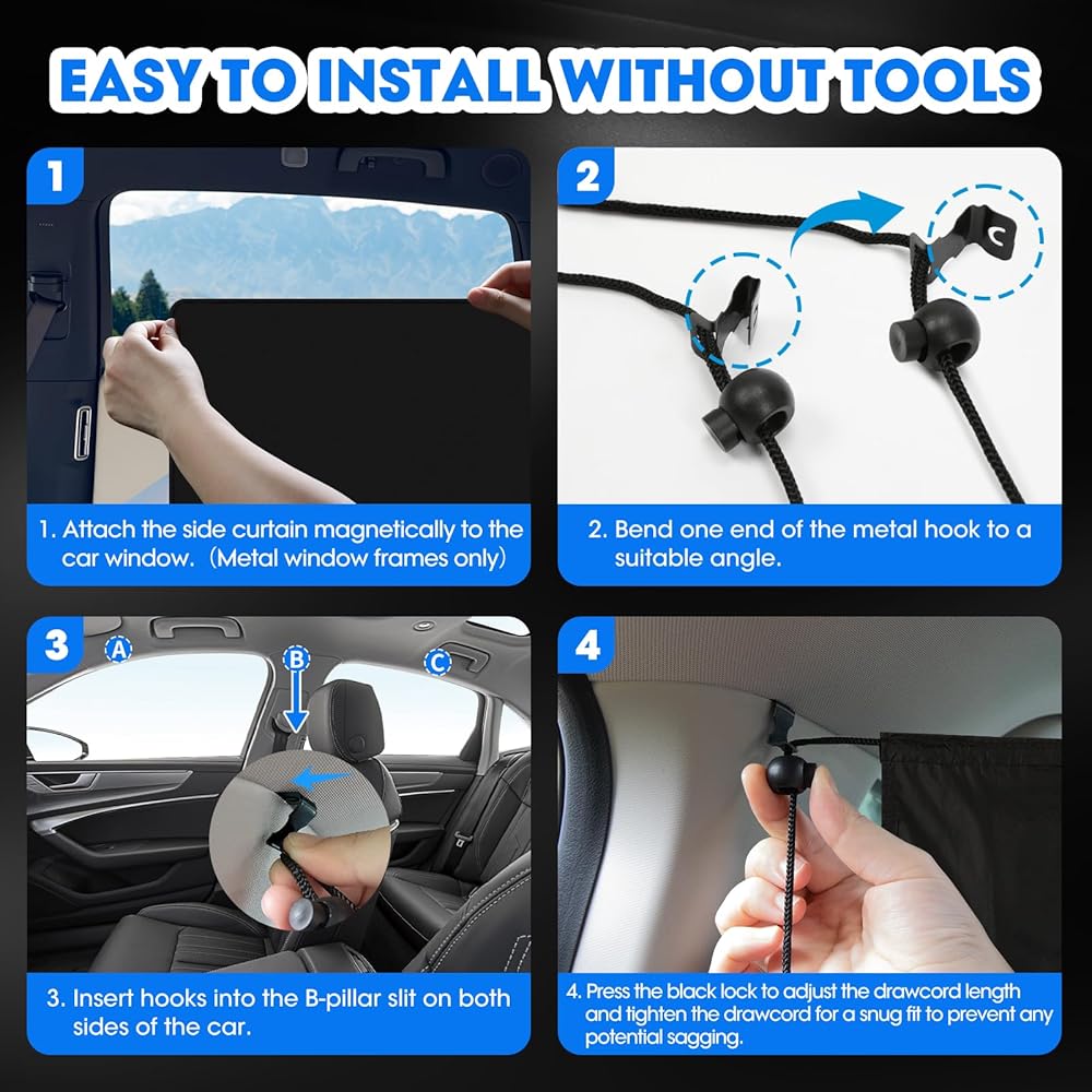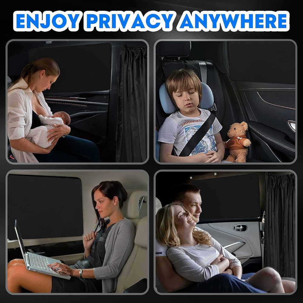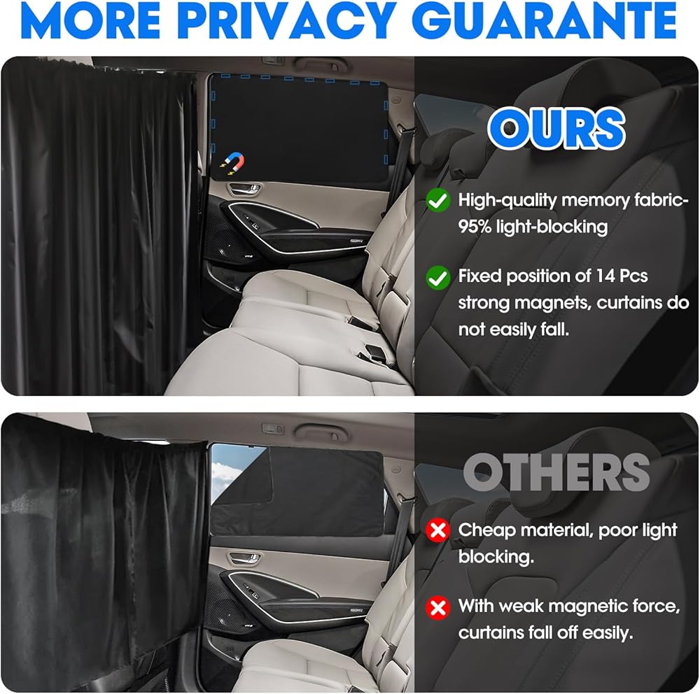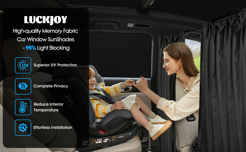 【استمتع بمساحة خاصة في أي مكان】: ستائر خصوصية السيارة عالية الجودة لدينا مصنوعة من نسيج غير شفاف لمنع الأشعة فوق البنفسجية والوهج بشكل فعال، مما يحافظ على برودة سيارتك وأكثر خصوصية. مثالية للتخييم أو الرحلات البرية أو القيادة الطويلة أو رعاية الطفل، ستارة الخصوصية LUCKJOY هي رفيقك المثالي. إنه يحميك من أشعة الشمس والمناظر الخارجية، مما يضمن قيلولة مريحة أو نومًا هادئًا. هذه الستائر رائعة أيضًا لتغيير الملابس والرضاعة الطبيعية والعمل وغير ذلك الكثير.