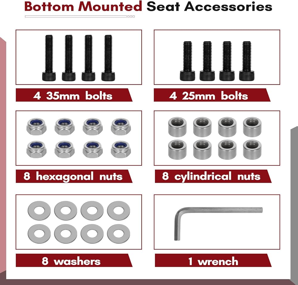 • 【ما تحصل عليه】 تتكون كل مجموعة من المسارات المنزلقة لمقعد السيارة العالمية من (1 × حامل، 2 × مزلقات مقعد السيارة، 1 × مفتاح ربط، 4 × 25 مم، 4 × 35 مم، 8 × غسالات، 8 × صواميل سداسية، و 8 × صواميل أسطوانية).