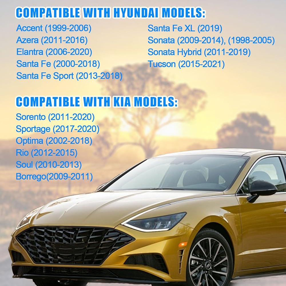 Replacement OEM Part Number # 58531-2B500 # 585312B500 # 58531-07000 # 5853107000 Compatible with Models Accent (1999-2006) Azera (2011-2016) Elantra (2006-2020) Santa Fe (2000-2018) Santa Fe Sport (2013-2018) Santa Fe XL (2019) Sonata (2009-2014), (1998-2005) Sonata Hybrid (2011-2019) Tucson (2015-2021) Sorento (2011-2020) Sportage (2017-2020) Optima (2002-2018) Rio (2012-2015) Soul (2010-2013) Borrego (2009-2011)