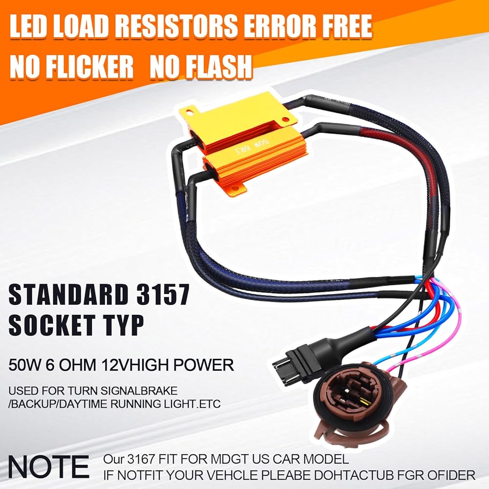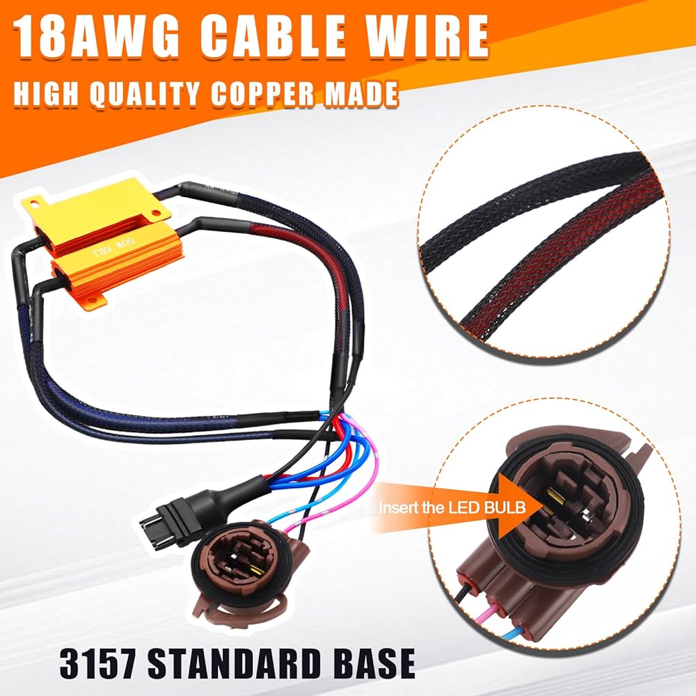 High Performance: built for efficiency, our LED resistor kit has a wattage of 50W and a coil resistance of 6 ohms; The 3157B resistors are usually installed in parallel with an LED bulb, with each one specially designed to stabilize working lights including daytime running lights, fog lights, and LED headlight bulbs