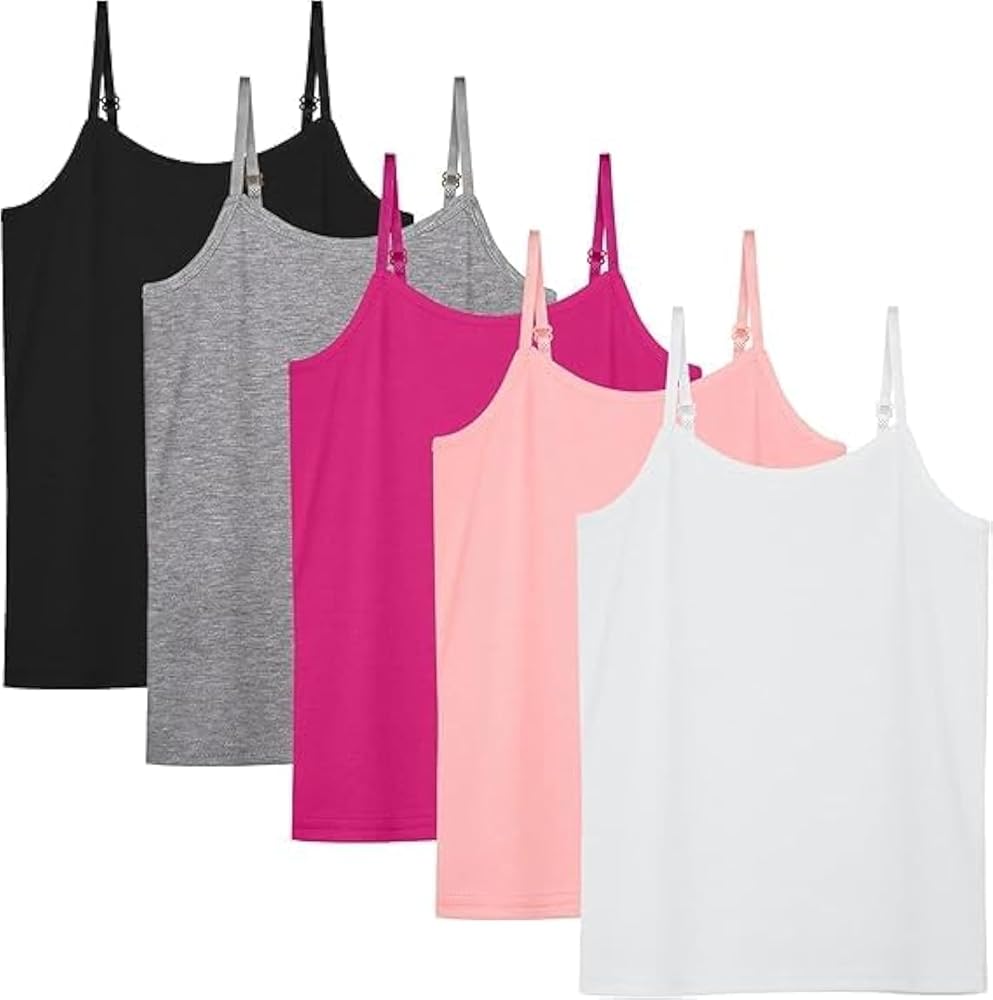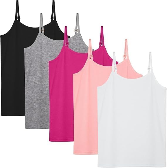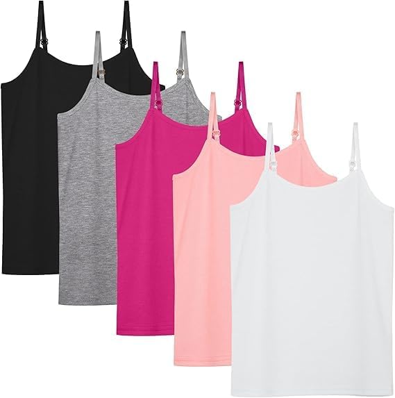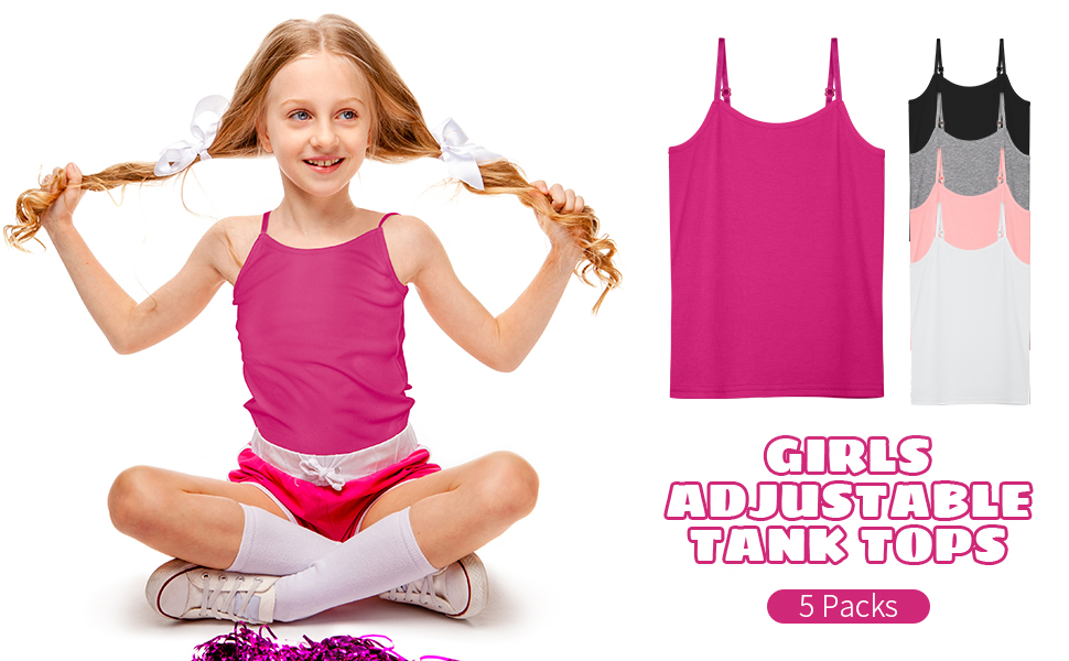 Package includes: our package comes with 5 packs of girls adjustable straps tank tops in classic colors, simple but stylish, easy to match with various outfits; sufficient quantity to meet girls daily wear and replacement needs