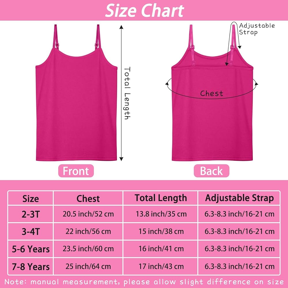 Multiple sizes: we provide you with these girls cami undershirts in a variety of sizes, suitable for girls of different ages, you can read the size chart in the picture carefully, and choose the right size for your lovely kids before ordering