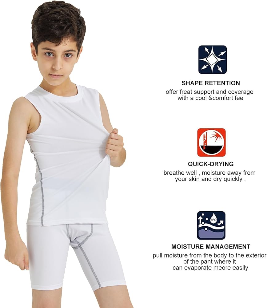☢【تمدد في 4 اتجاهات】تم تصميم القميص الضاغط بدون أكمام للأولاد باستخدام تقنية التمدد في 4 اتجاهات، مما يسمح للرياضيين الصغار بالتحرك بشكل مريح. سواء كنت تقوم بالمراوغة في ملعب كرة السلة أو الركض في ملعب كرة القدم، فإن هذه القمصان المضغوطة للأطفال تتكيف مع تحركاتهم دون قيود.