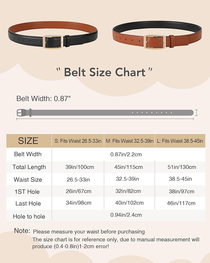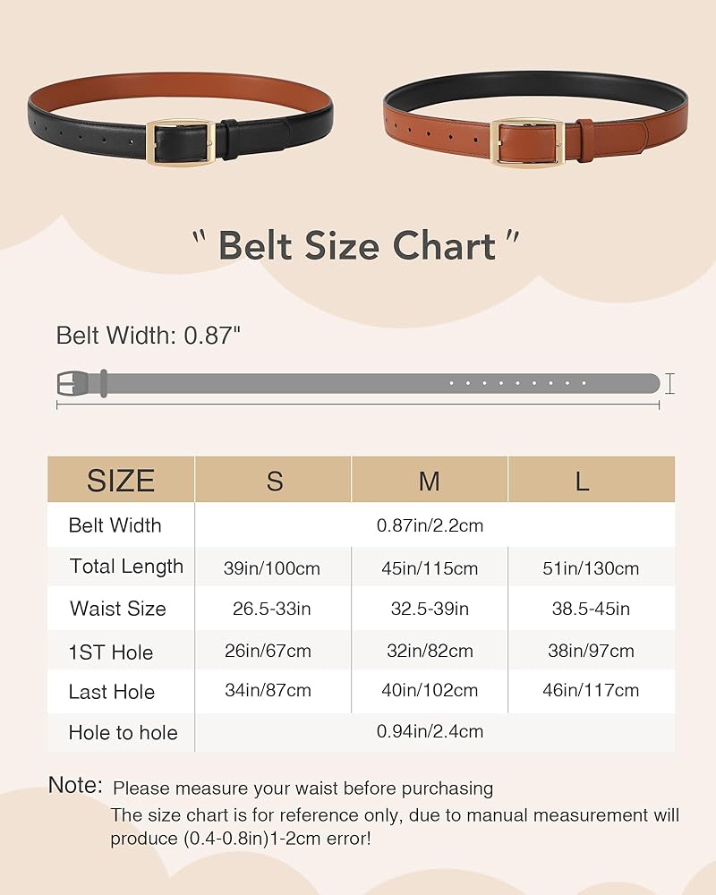 • يناسب كل مزاجك: يتناسق مع الجينز أو السراويل الكاجوال أو الفساتين أو المعاطف أو السترات الصوفية. العرض المثالي (0.9 بوصة/2.2 سم) يكمل مختلف الملابس، من الملابس الكاجوال إلى الرسمية